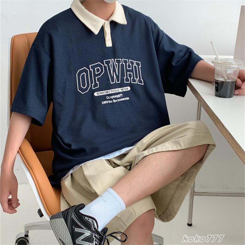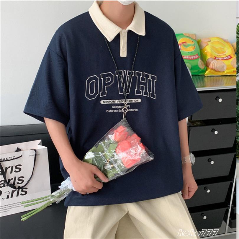 Tシャツ メンズ ポロシャツ 半袖 カジュアル ビジネス ワーク 仕事 通学 通勤 青少年 柄物 学生 普段着 春夏 男子 トップス ポロシャツ