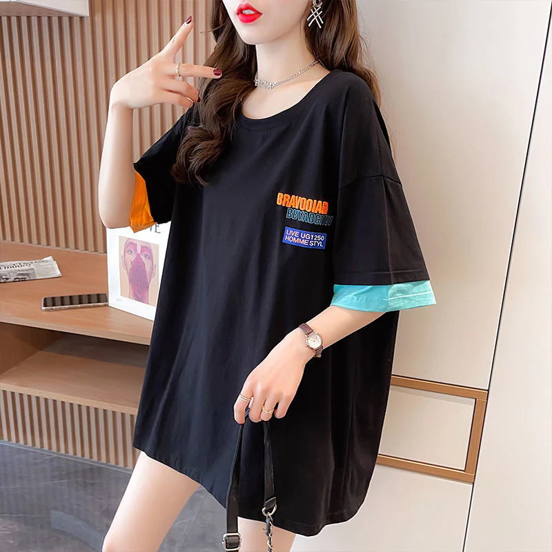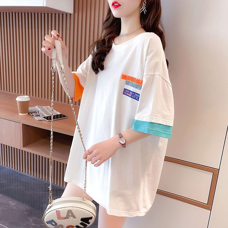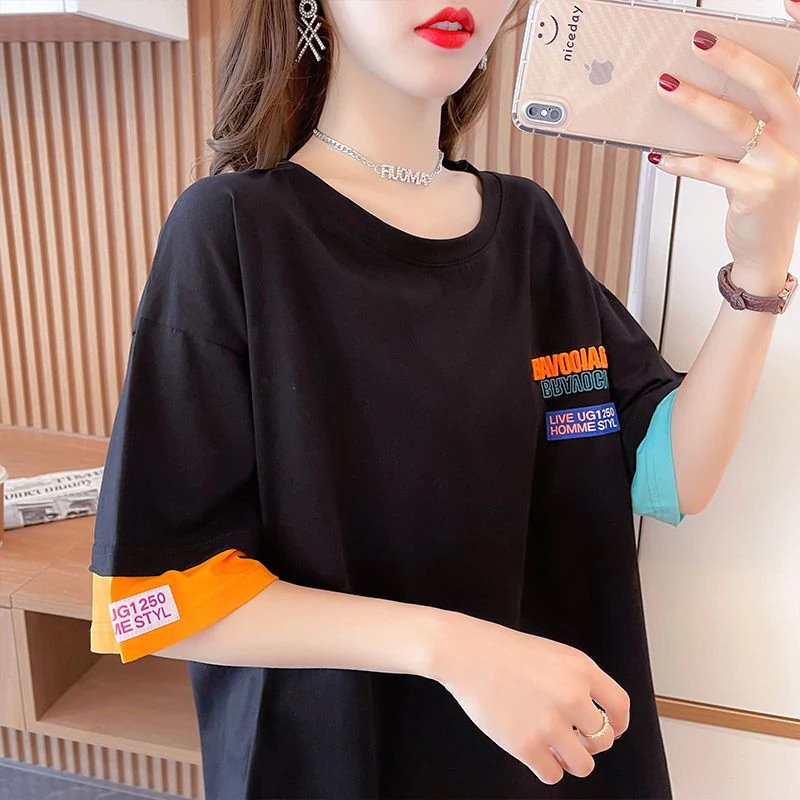 Tシャツカットソー Tシャツ夏半袖 ブラウス オーバーサイズ体型カバーゆったり無地 tシャツ 半袖 レディース クルーネック 韓国ファッション トップス