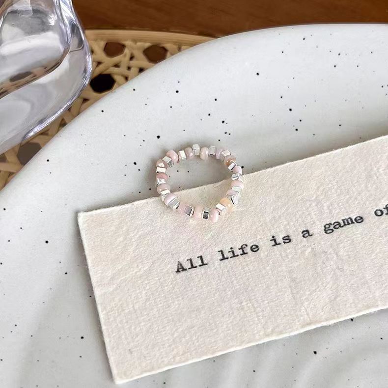 韓国の新型カラービーズ砕銀指輪女性百合甘い手飾り小衆デザイン感ファッション弾力指輪 指輪