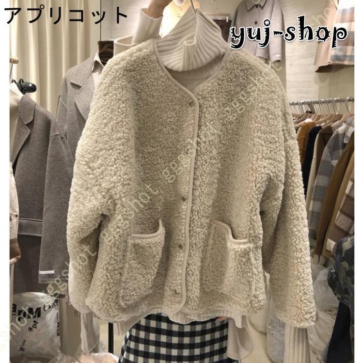 人気沸騰新柄追加 ボア ブルゾン レディース ボアジャケット 大きいサイズ 秋 冬 ボア ノーカラー アウター コート ファー もこもこ 防寒 大人 ショート丈 フリースジャケット