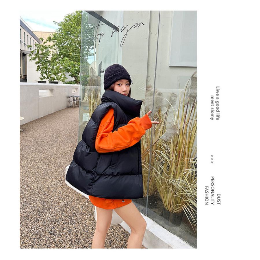 中綿ベスト レディース ダウンベスト ベスト 防寒ベスト ハイネック 中綿入り チョッキ ジレ アウター トップス 立ち襟 体型カバー 通勤 秋冬