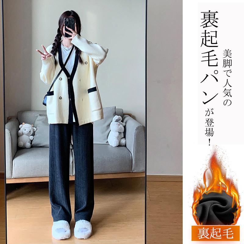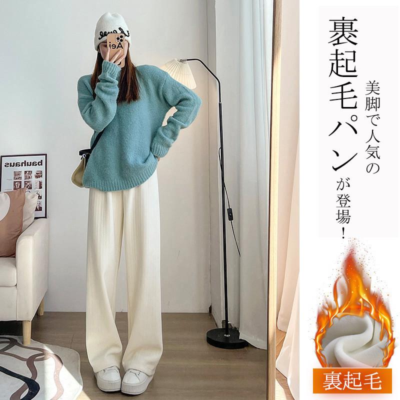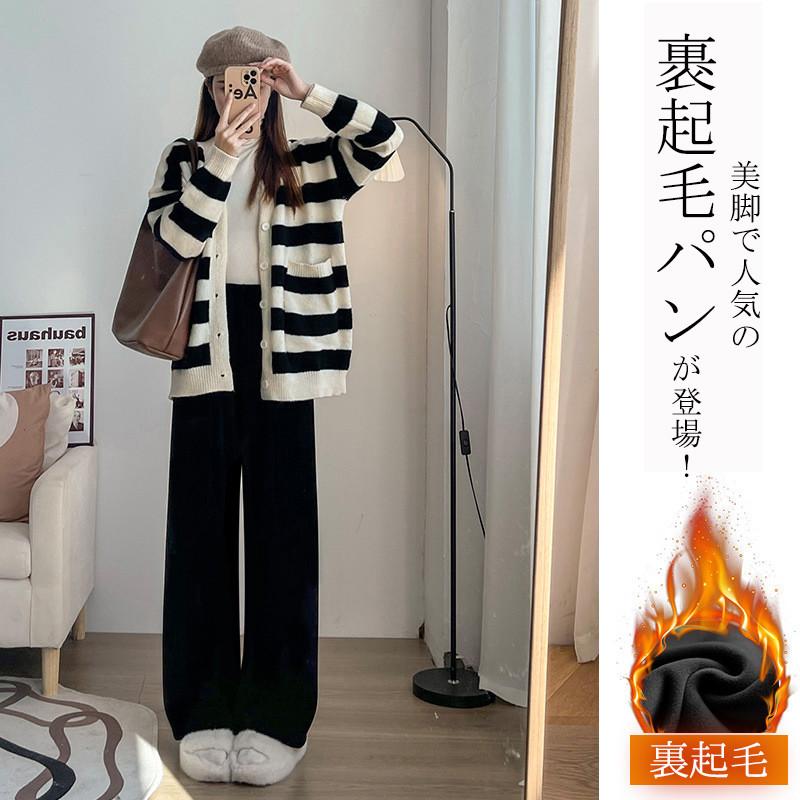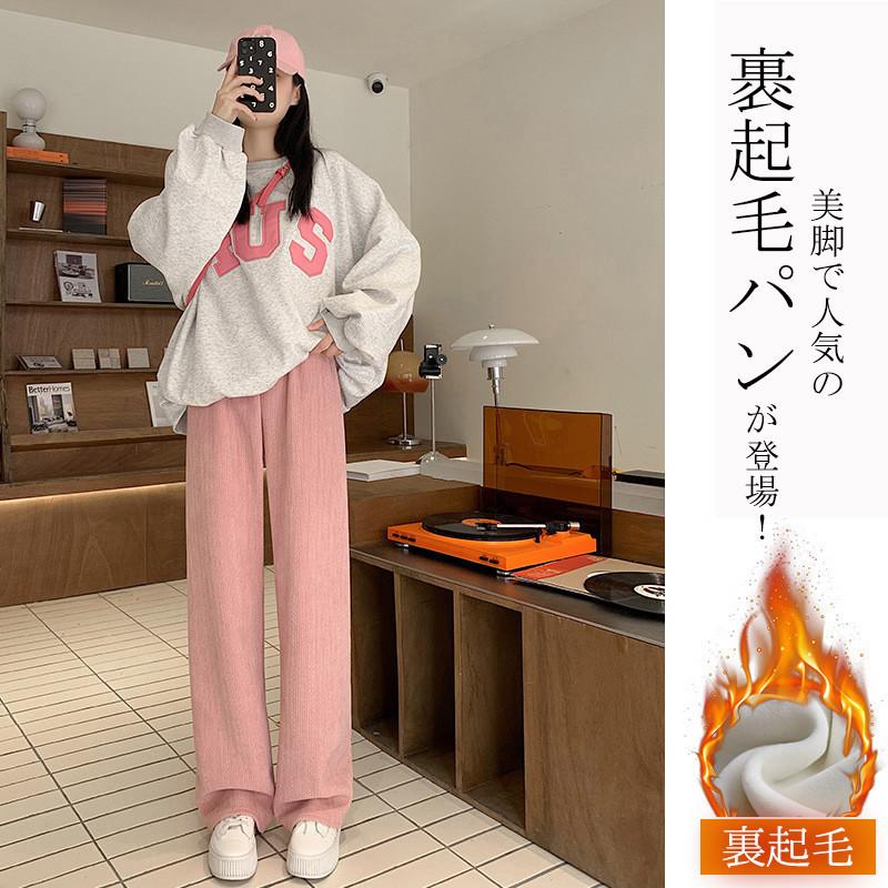 ワイドパンツ レディース ロングパンツ 裏起毛 ボア 秋冬 ガウチョパンツ ボトムス ウエストゴム カジュアル 体型カバー ゆったり ロングパンツ