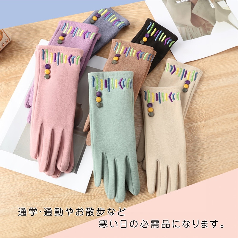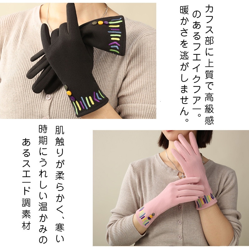 手袋 レディース 秋冬 おしゃれ かわいい 暖かい スマホ タブレット 手ぶくろ 防寒 防風 保温 裏起毛 寒さ対策 黒 ファー ボア 手首 スマホ手袋 人差し指 花 5本指 通勤手袋 レディ