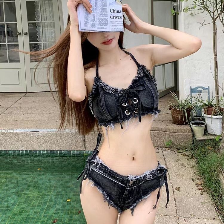 欧米 ギャル セクシー デニム ビキニ 2点セット レディース 砂浜 休暇 バンド 分体 水着 ビキニ