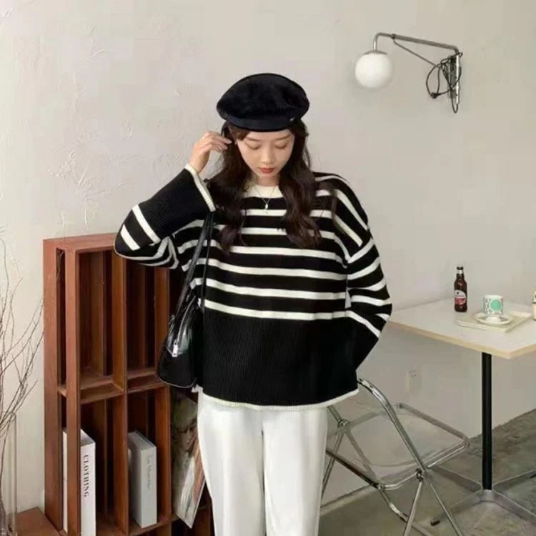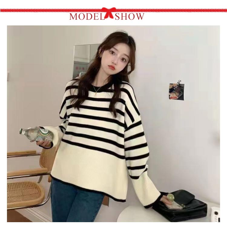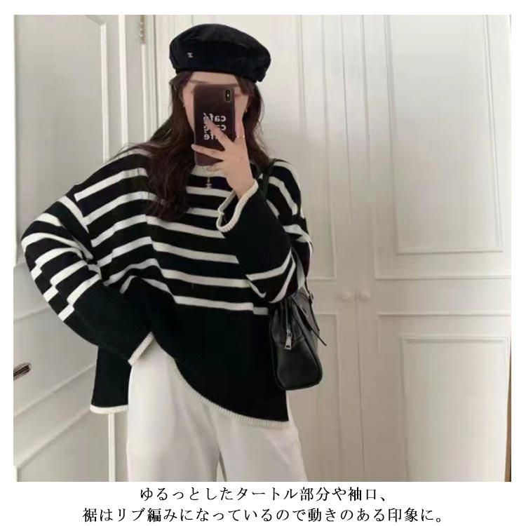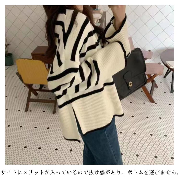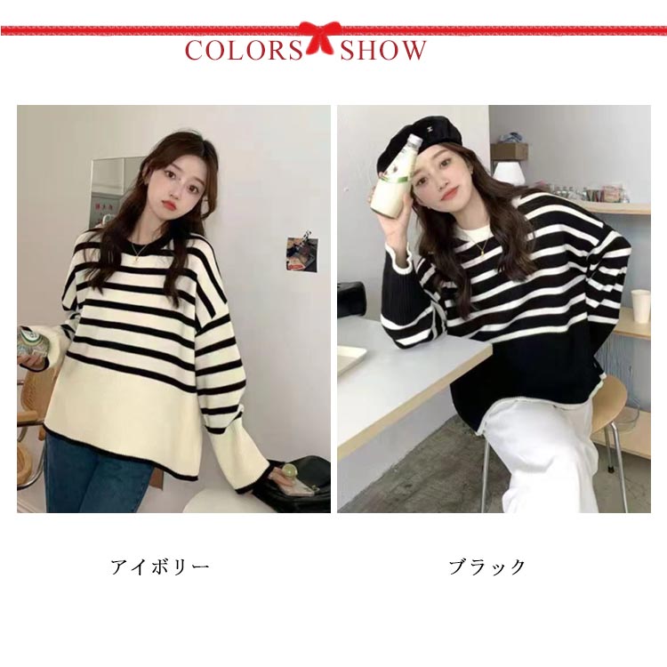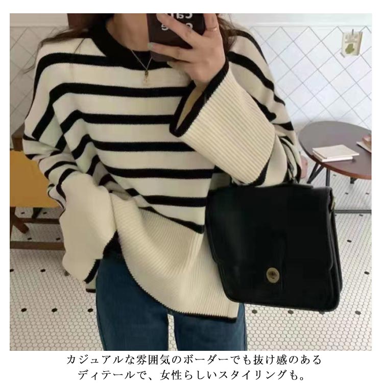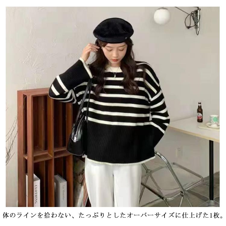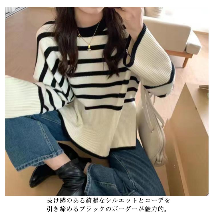セーター ニット プルオーバー 春 長袖 ボーダー クルーネック 長そで トップス ボーダー レディース ニットウェア ニットプルオーバー チクチクしない オーバーサイズ 大きめ ゆったり 体型カバー