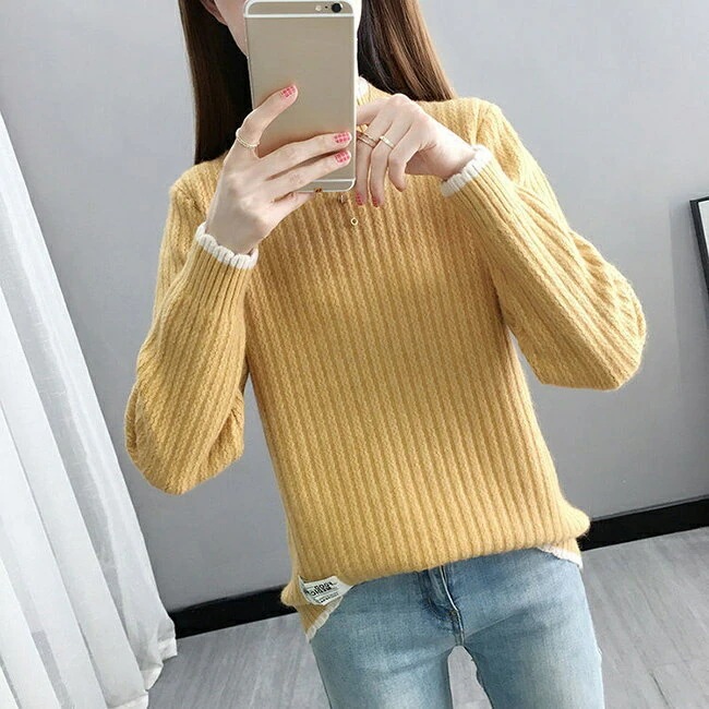 ニット レディース セーター ハイネック 長袖 リブニット きれいめ トップス 洗える ニットアップ tシャツ シンプル 秋冬 ニット