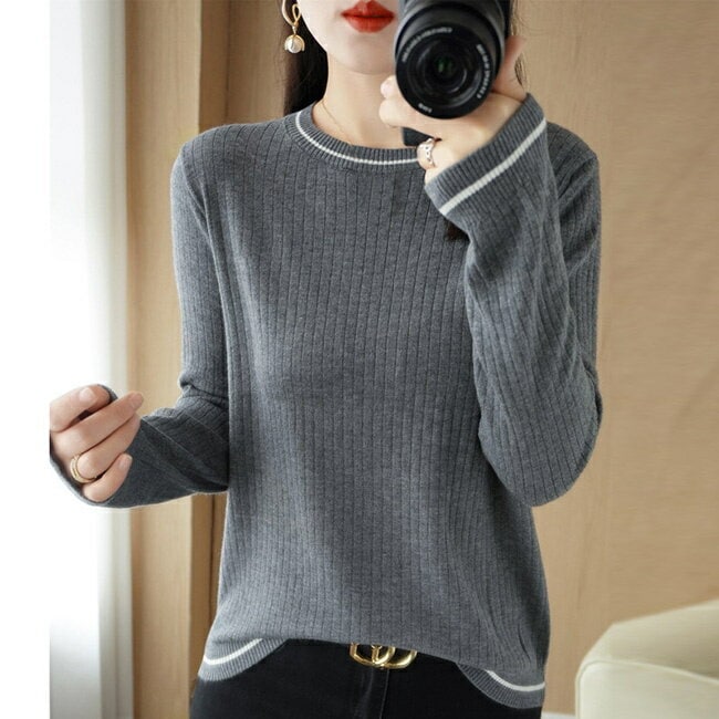 ニット レディース セーター リブニット クルーネック きれいめ トップス 洗える ニットアップ tシャツ シンプル 秋冬 ニット
