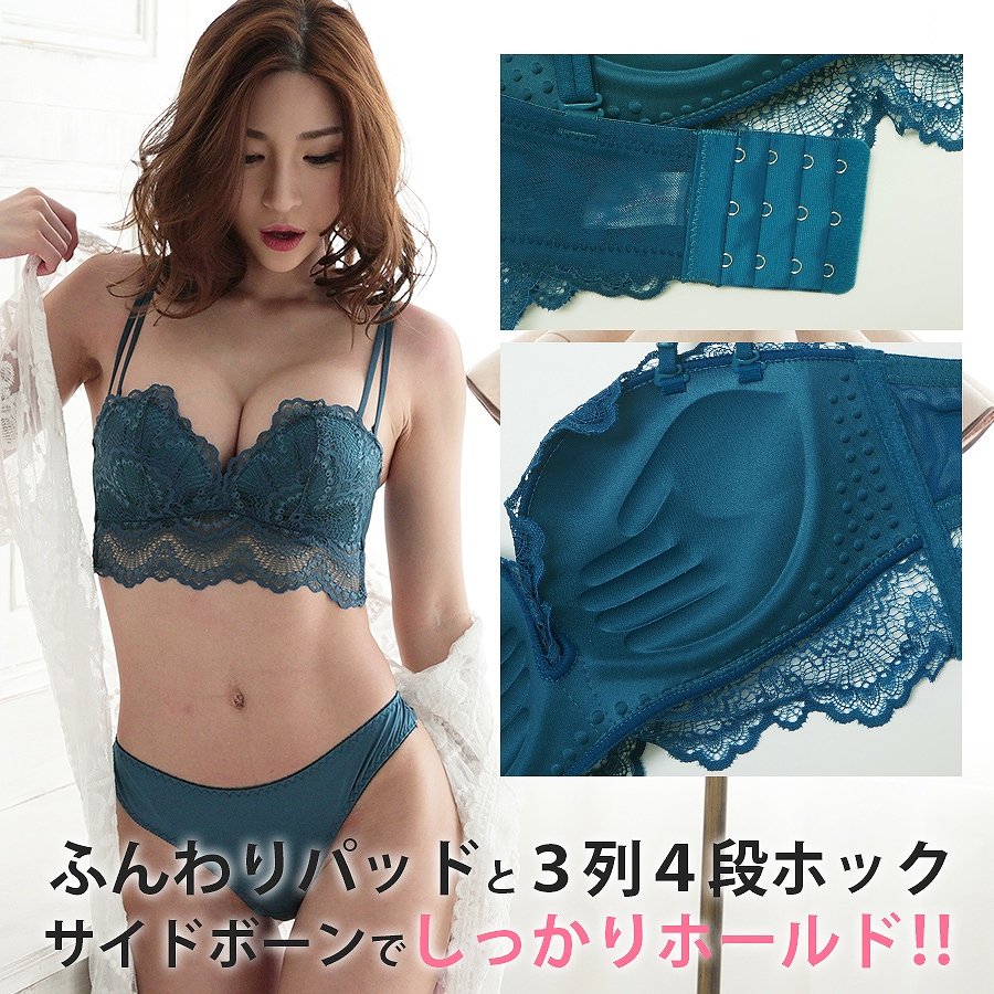 下着 総レース Tバックセット らくらく盛れる ブラamp Tバック ワイヤレスブラ ノンワイヤー ブラ&ショーツ上下セット