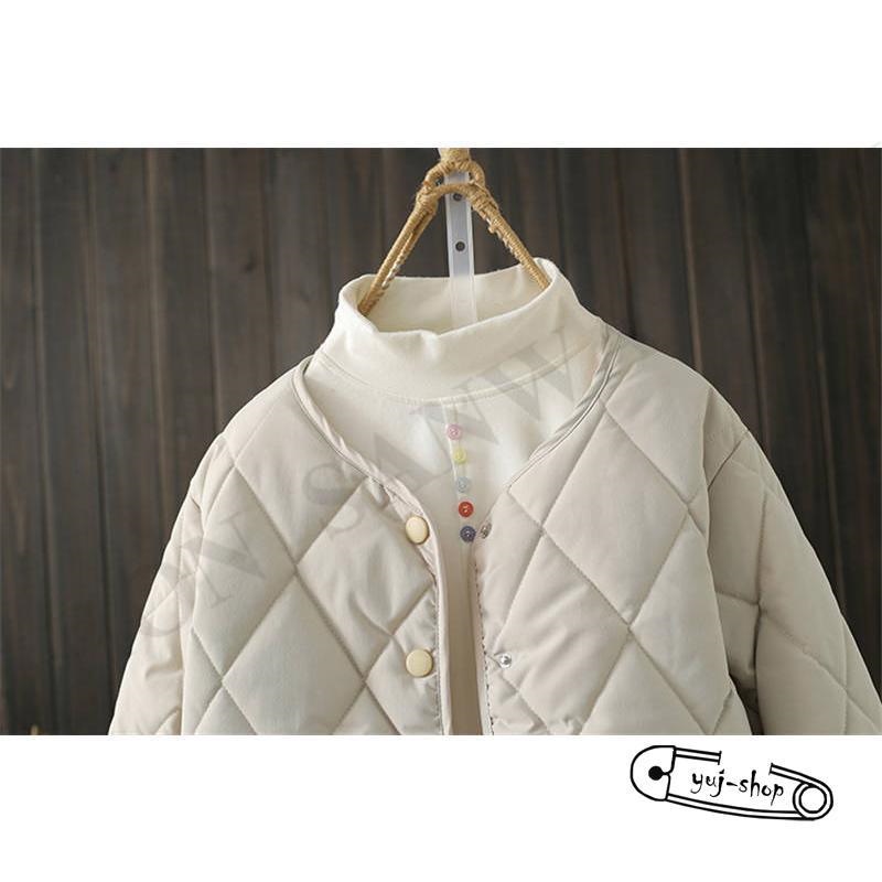 新作登場 上品 レディース 秋冬 ノーカラー 中綿 アウター コート ショート 羽織り 上着 長袖 軽量 シンプル 無地 ボタン開閉 その他 アウター