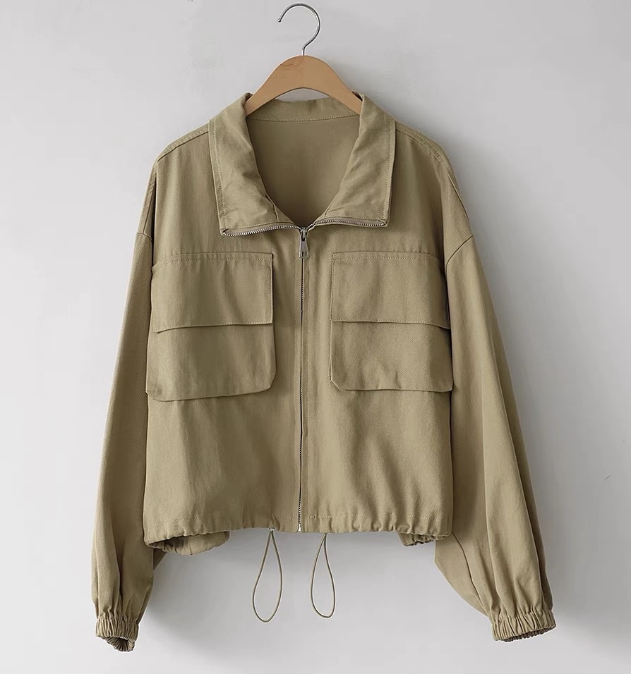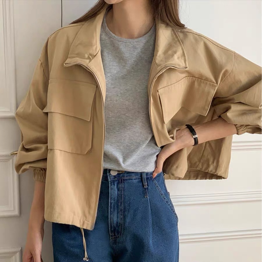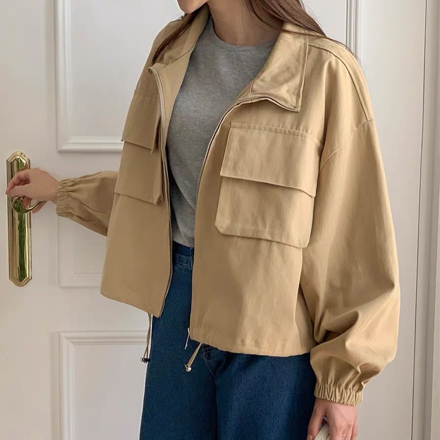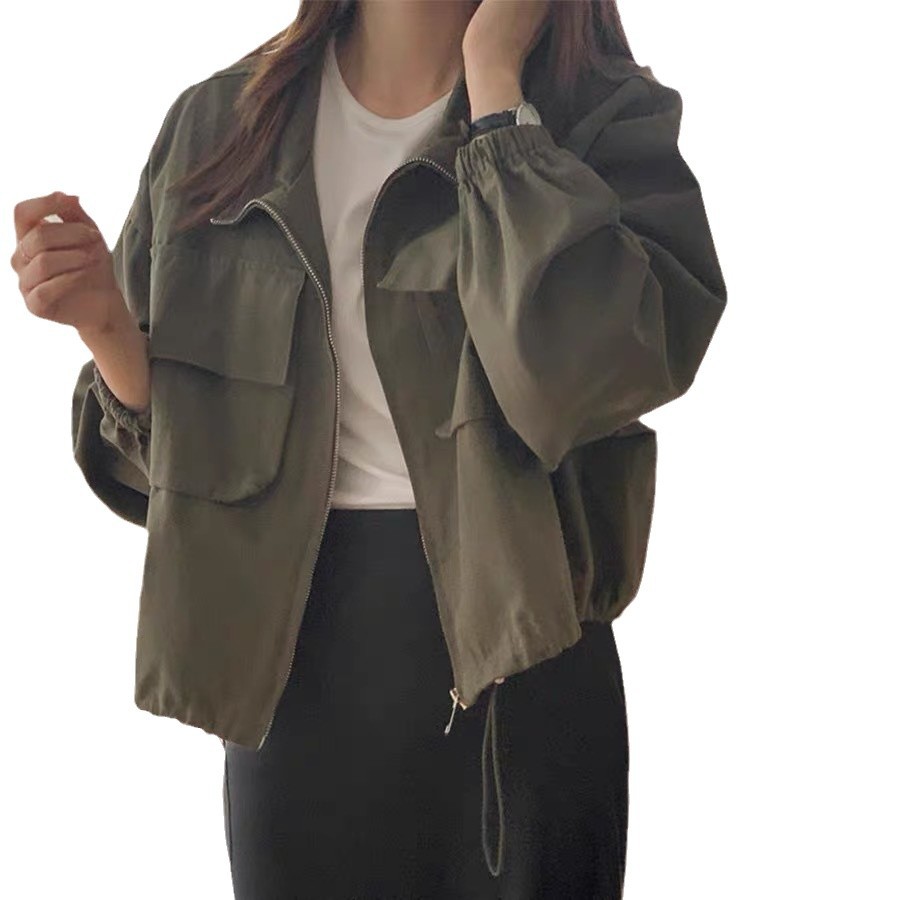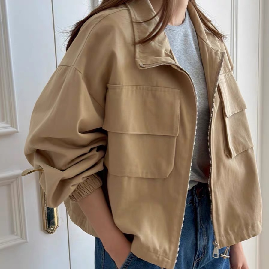 韓国chic秋新野球大ポケットbf風カジュアルファスナー工装ショートジャケット立襟コート上着 ジャンパー ブルゾン