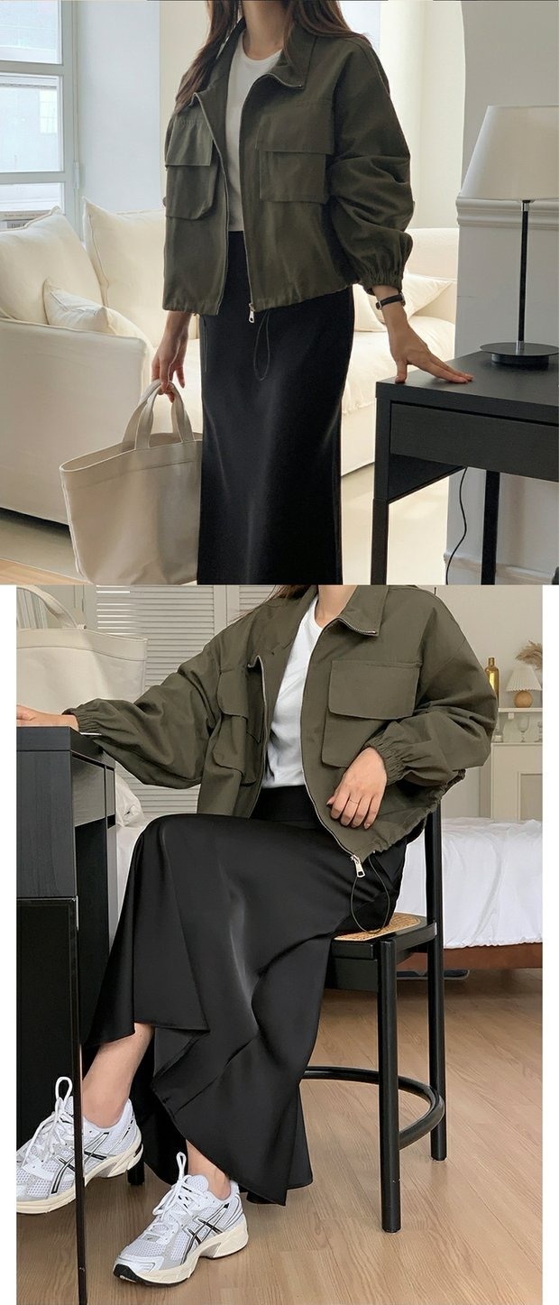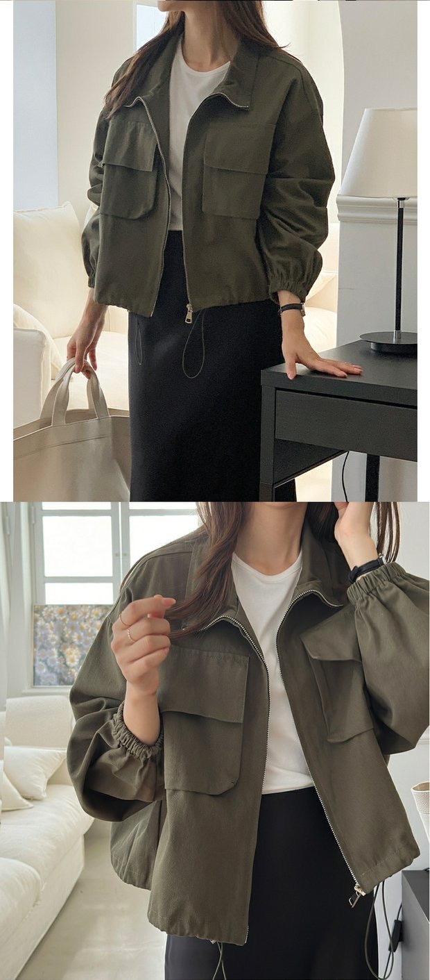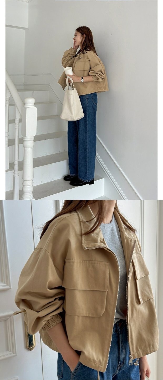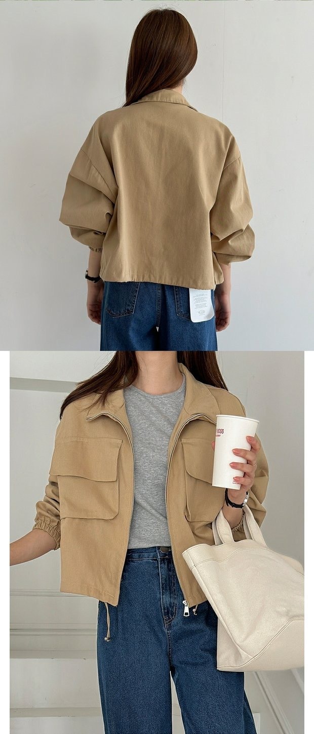 韓国chic秋新野球大ポケットbf風カジュアルファスナー工装ショートジャケット立襟コート上着 ジャンパー ブルゾン