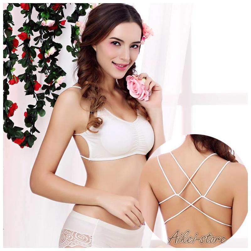 単品 ブラジャー スポーツブラ ブラトップ バッククロスブラ キャミソールブラ レディース 女性用 インナー 下着 黒 白 パッド入り シンプル 無地