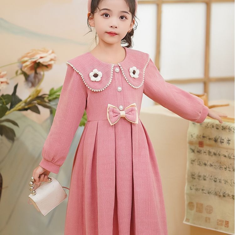 子供ワンピース秋冬新作女性韓国版長袖ベルベット厚手の子供洋風赤いスカート ワンピース ドレス