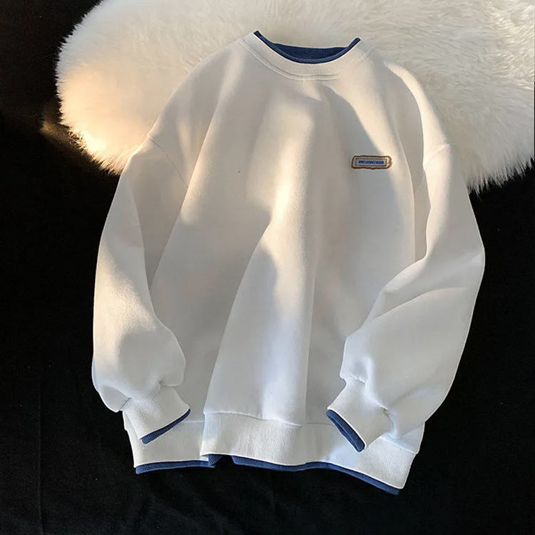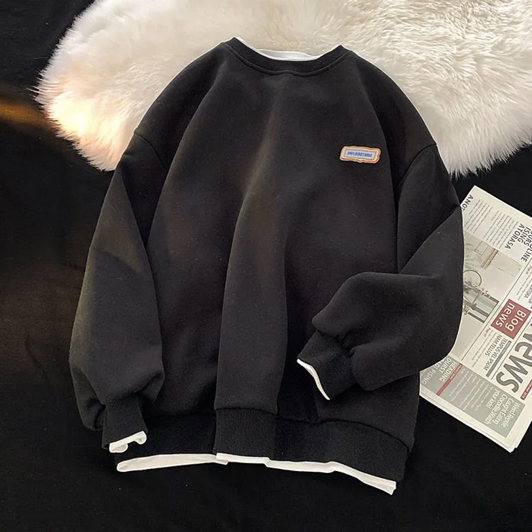 スウェット トレーナー 長袖 重ね着風 レディース メンズ クルーネック レイヤード 丸首 トップス 無地 ゆったり シンプル 大人 学生 春 秋 ワンポイント 白 黒 ロイヤルブルー オM883