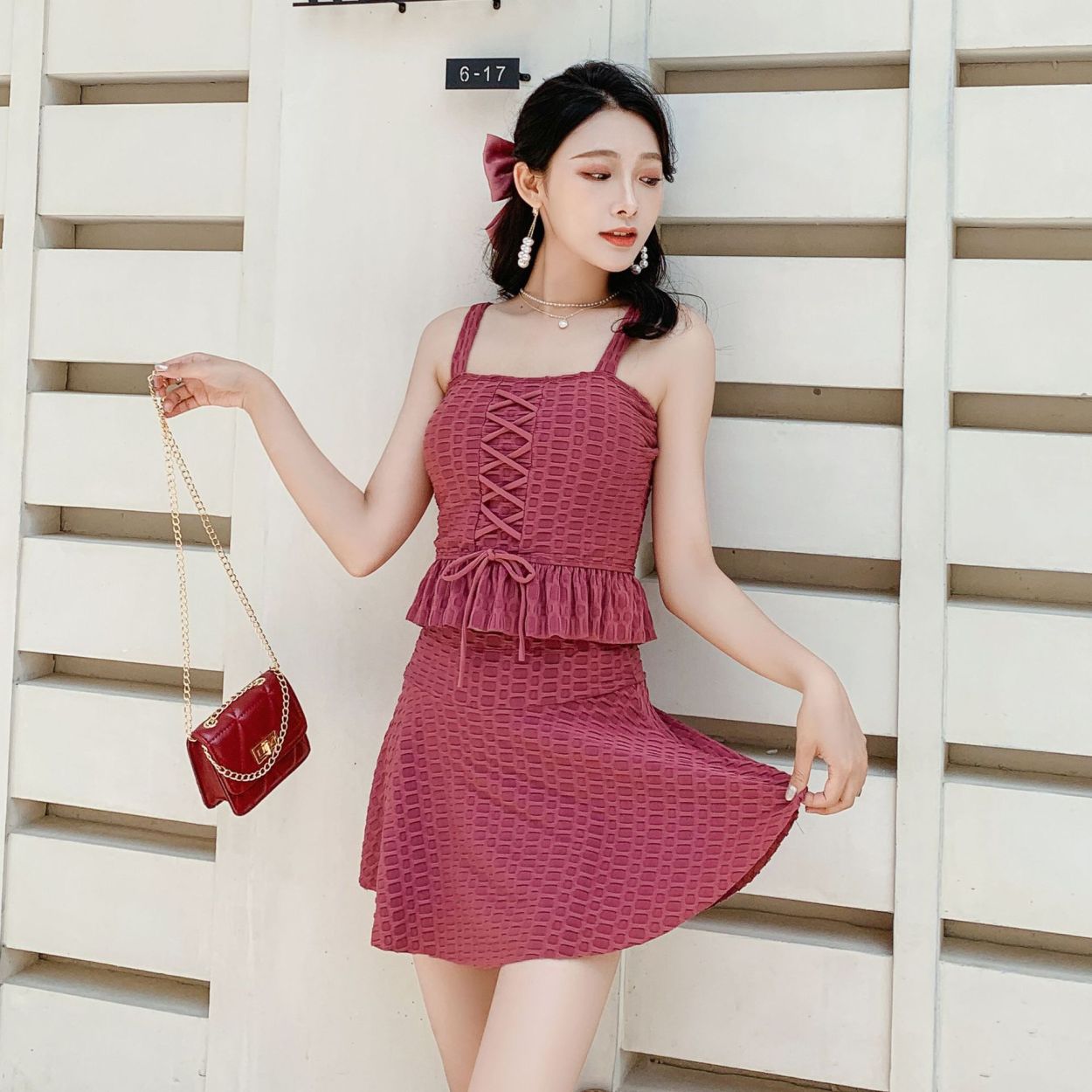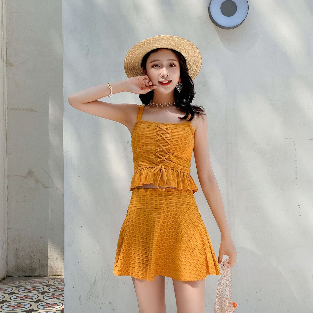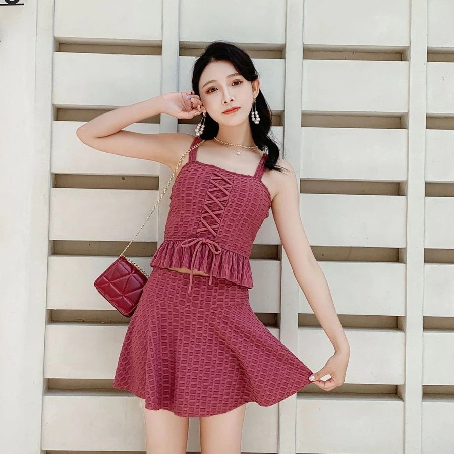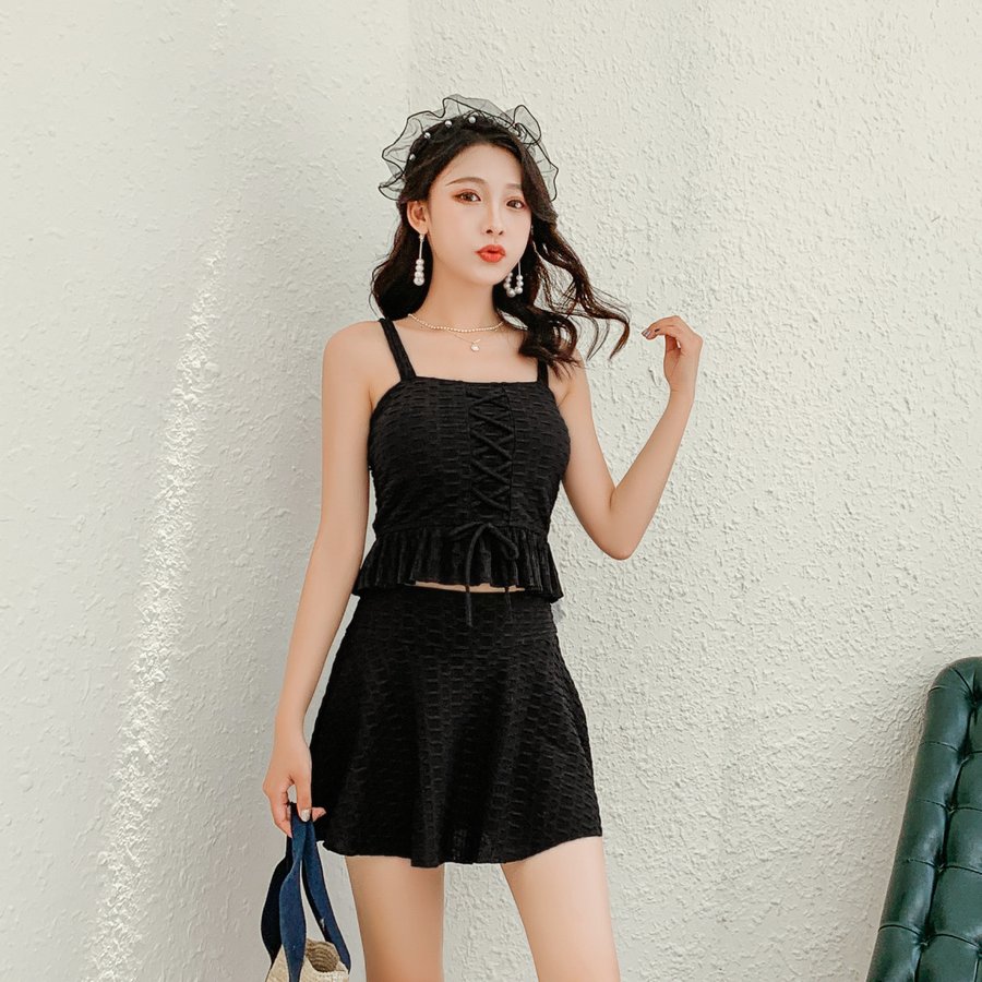 水着 レディース 体型カバー タンキニ ブラ ショーツ フリルスカート 2点セット トップス 半袖 ワンピース水着