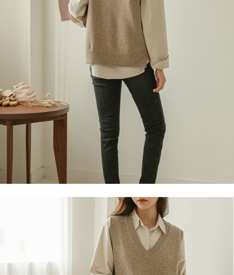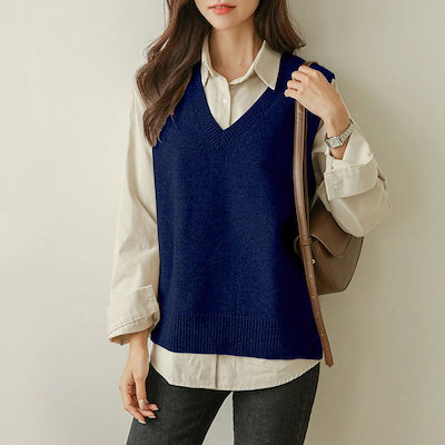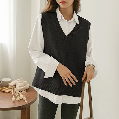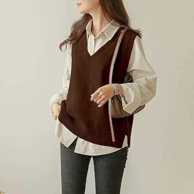 人気なリブニット 韓国ファッション レディースベスト vネック ニット通勤 トップス ノースリーブニットカーディガン 重ね着風 無地 カジュアル