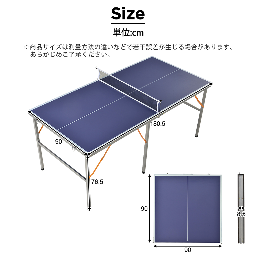卓球台 折りたたみ ネット付 ラケット付 ピンポン球付 家庭用 Blue POLYETHYLENE
