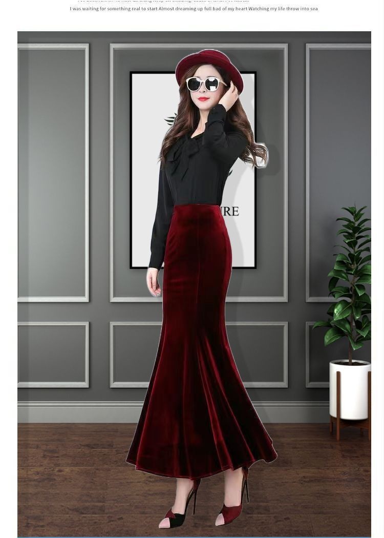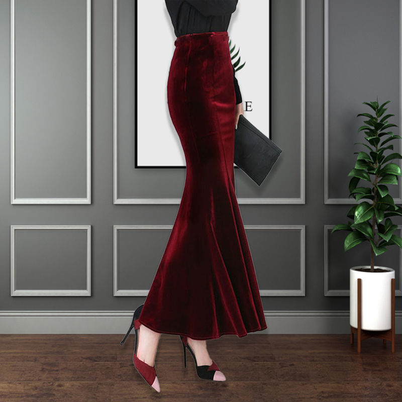 マキシスカート 脚魅せミニスカート マーメイドスカート 夕イトスカ一ト秋冬 ロングスカート韓国ファッション ロングスカート フレアススカート ゴールドベルベット