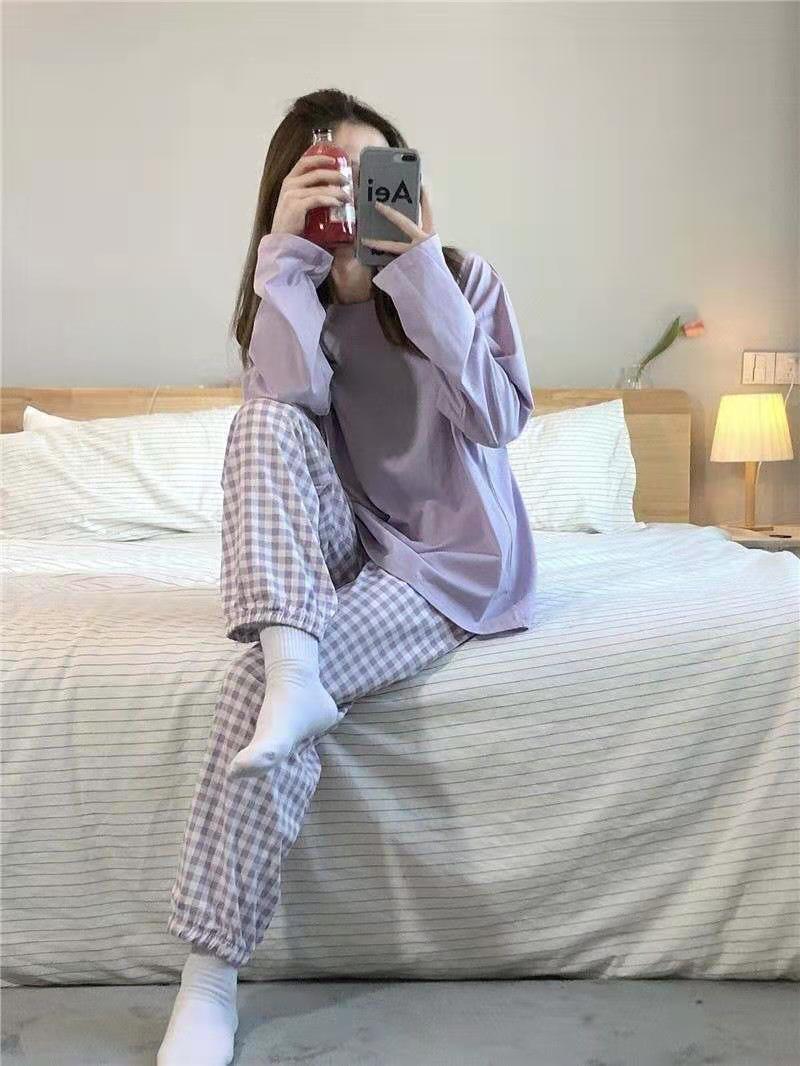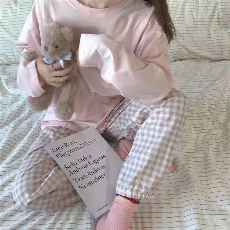 秋新作 パジャマ レディース 韓国ファッション 可愛い チェック 大きいサイズ 長袖 ルームウェア ins 学生 ナイトウェア 柔らかい 快適 部屋着 春秋セットアップ 上下セット