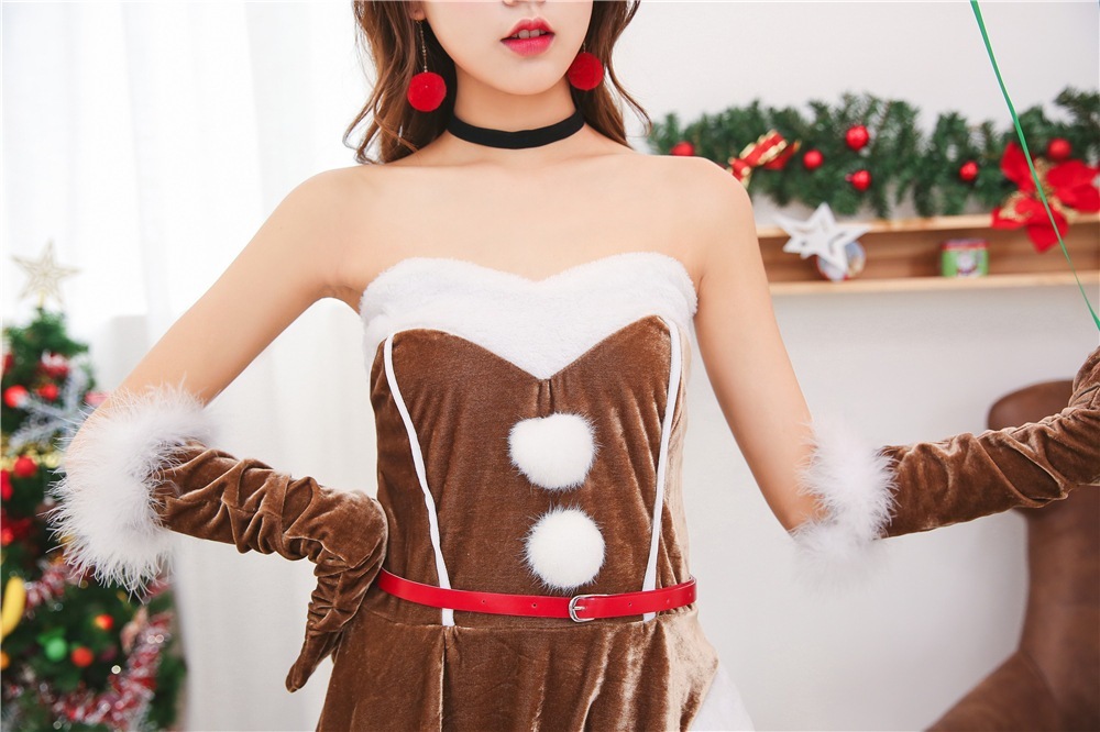 クリスマス衣装ワンピース トナカイ 新品 サンタ コスプレ 鹿 5点セットワンピース+首飾り+カチ ハロウィン