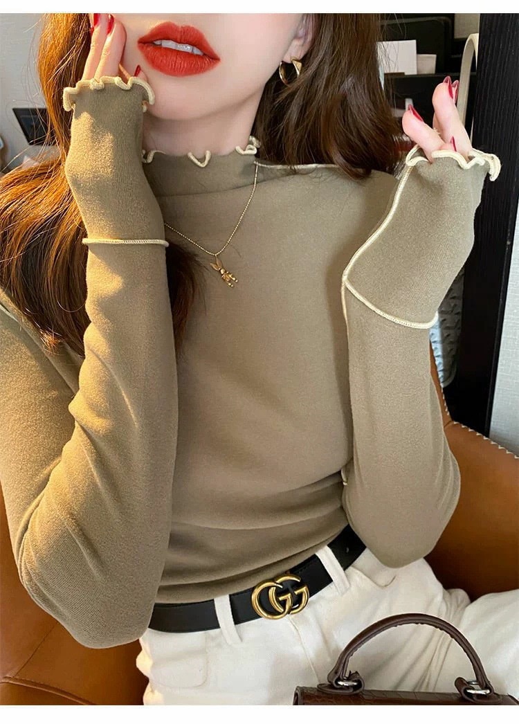 ベーシックニット 秋冬 保温 ニットカーディガン 両面着用 ニット長袖 アンダーウェア スエード ハイネック タートルネックニット ニット