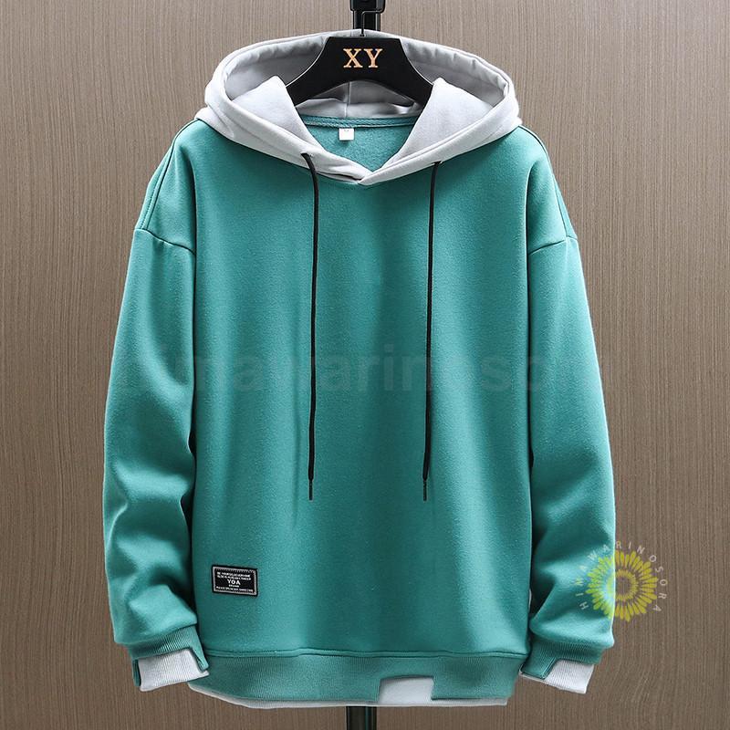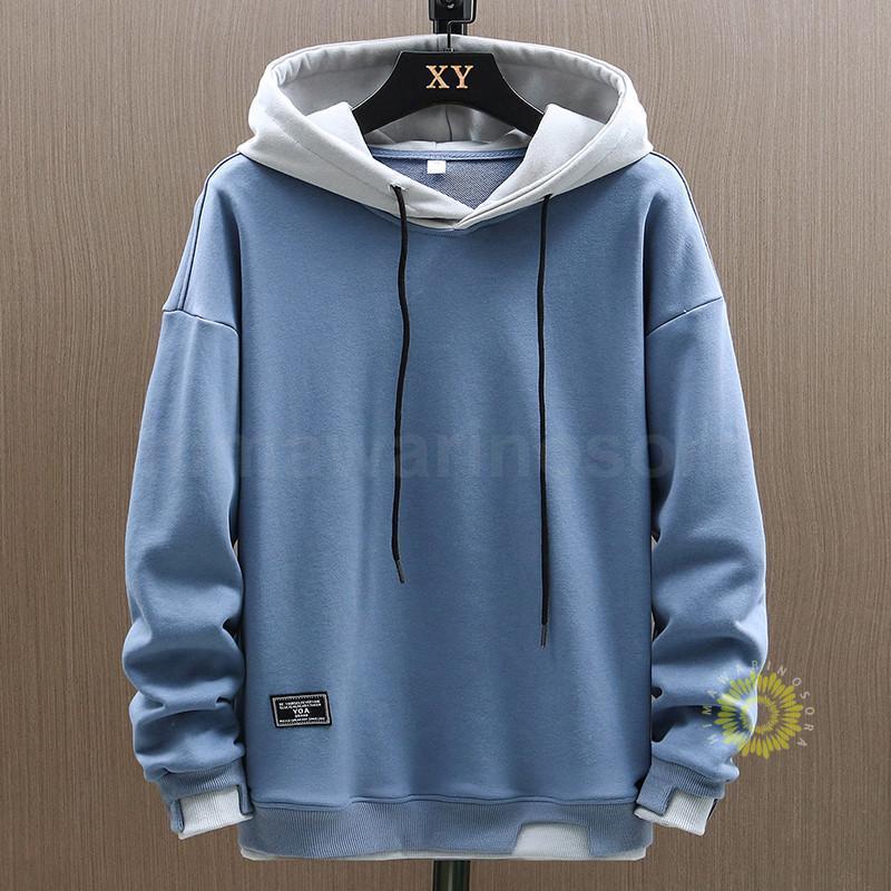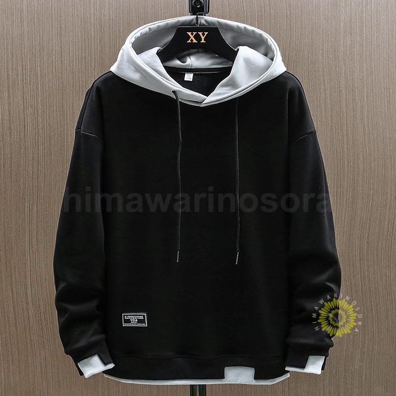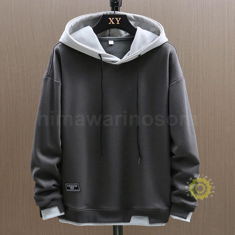 パーカー メンズ アウター プルオーバー フェイクレイヤード スウェット トップス フード付き 長袖 ゆったり 秋冬 シンプル 無地 防風 かっこいい