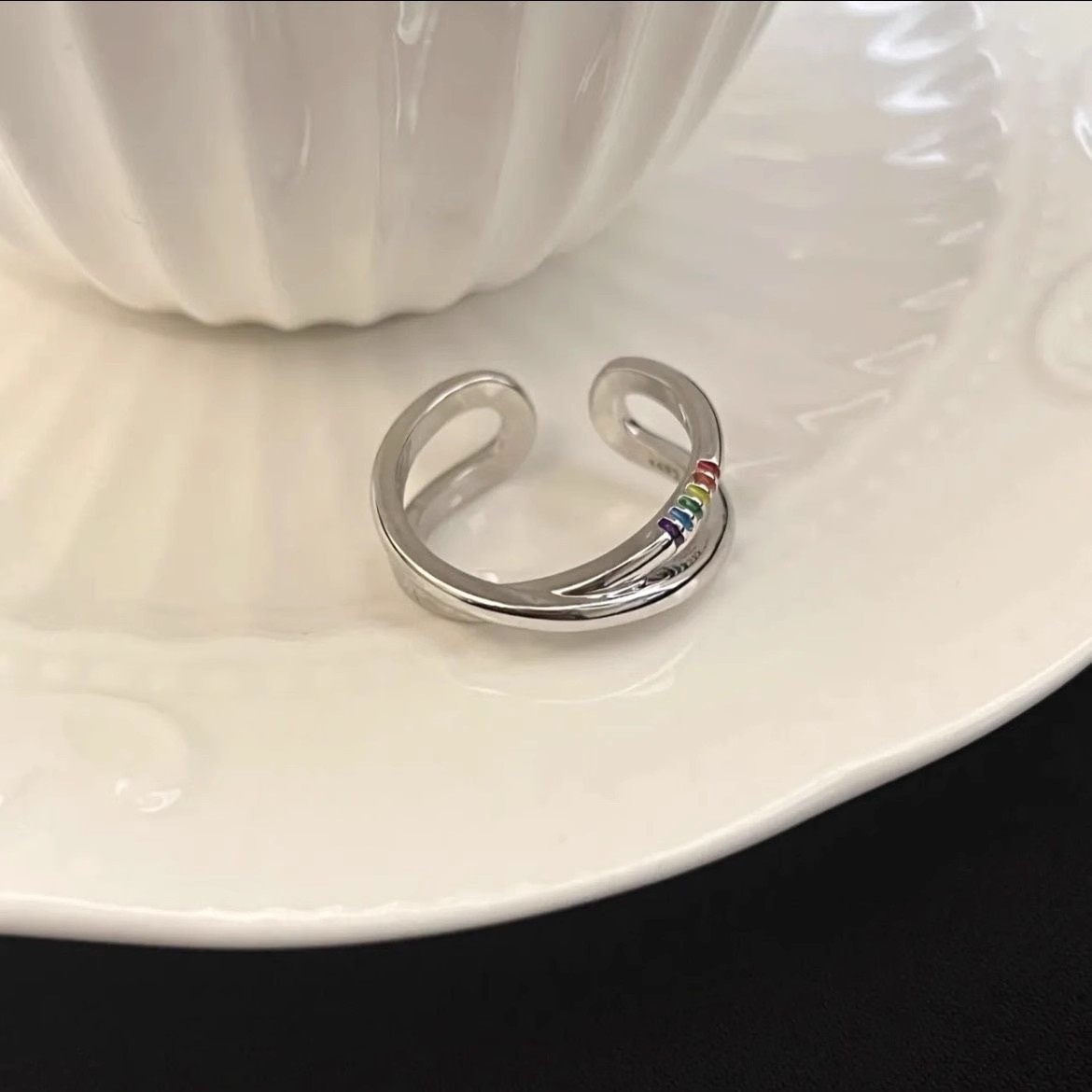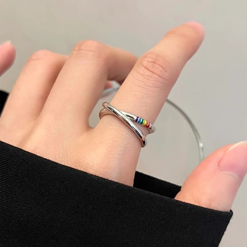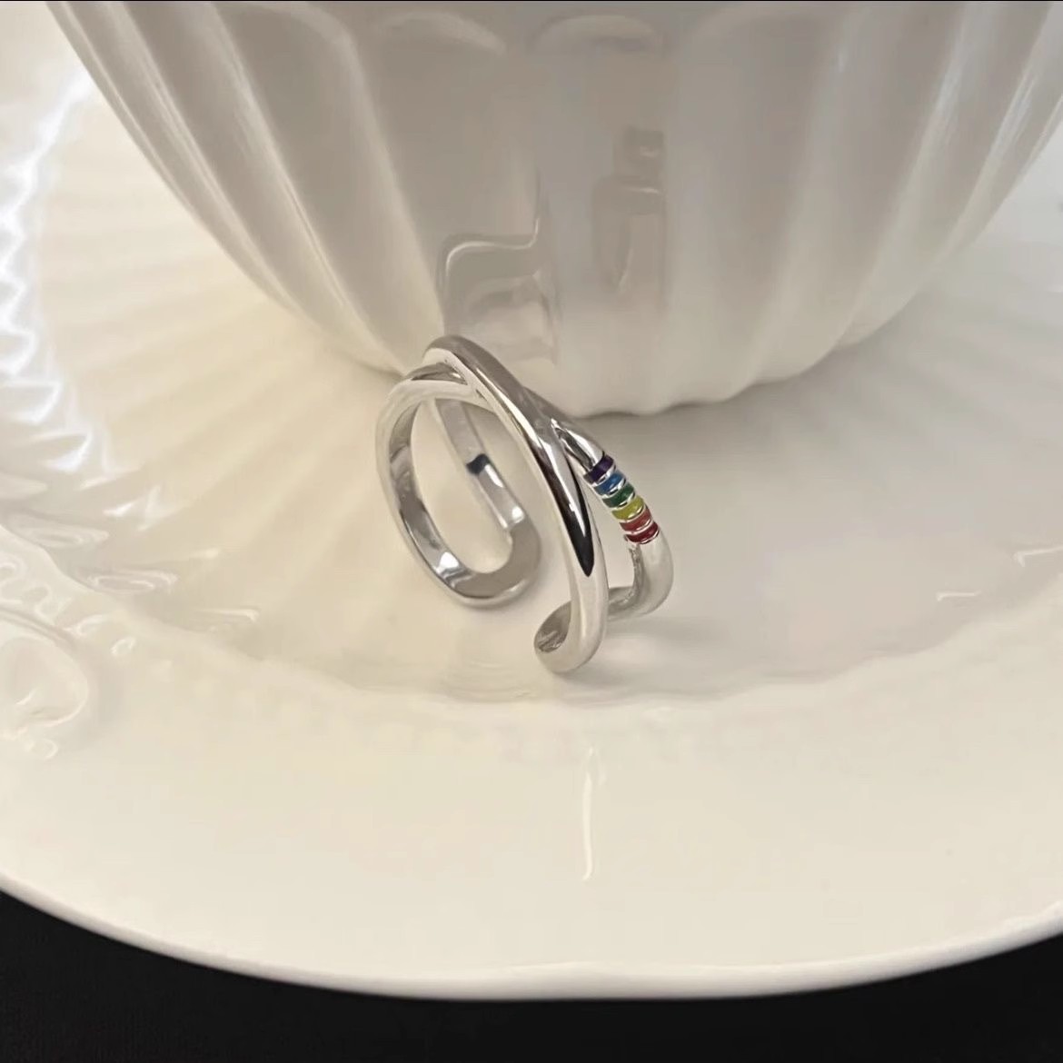 虹の指輪 レディース 女性 アクセサリー ins シンプル 軽贅沢ファッション 小物 かわいい 調節可能 指輪