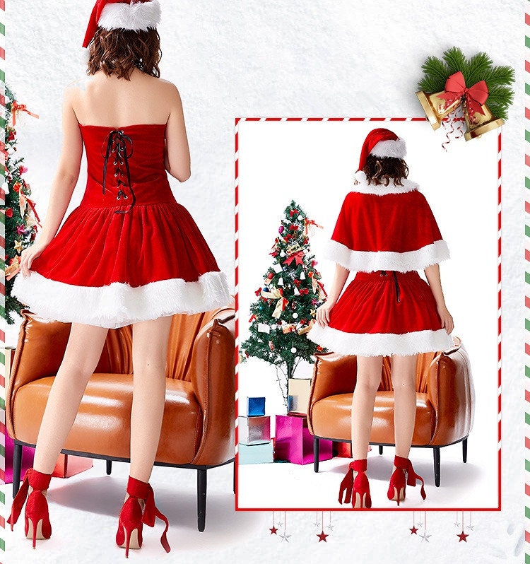 2024クリスマス コスプレ 衣装 仮装3点セット2点セットセットアップサンタ コスプレクリスマス帽子 ドレス ワンピース コスチューム スカートワンピース衣装 可愛い コスチューム年賀状ソフト