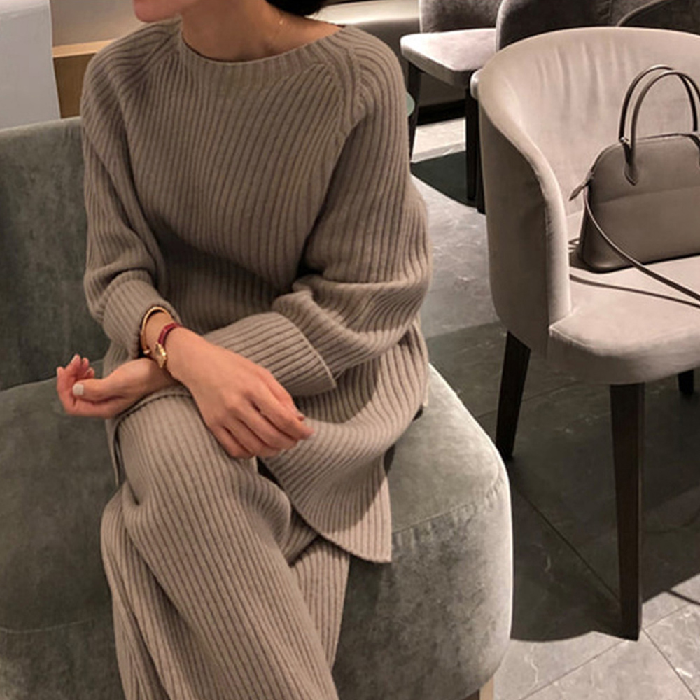 韓国ニットセットアップ レディース 秋冬 カットソー