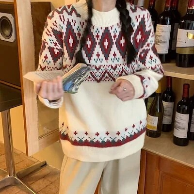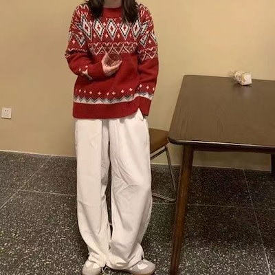 2024新作 長袖 クリスマス レディースニットセーター トップス レディースニットインスタ映え ハイネック 長袖 パーカー 秋冬 暖かい 柔らかい ガールズトーク