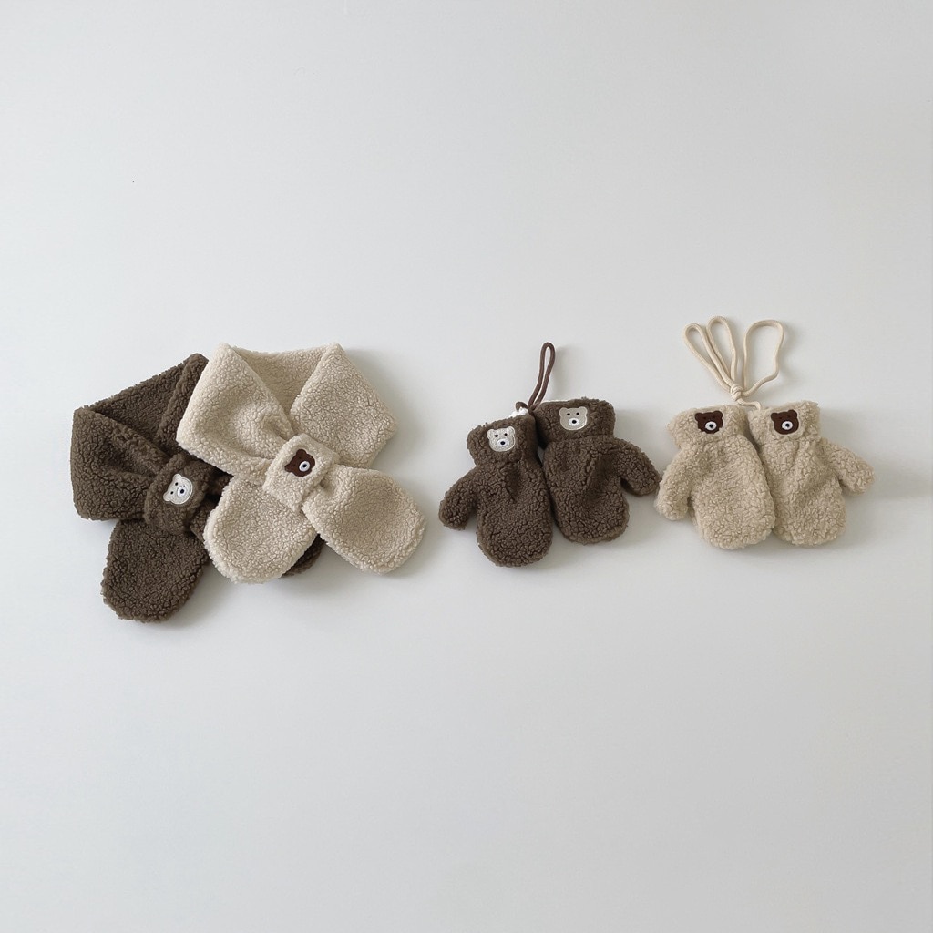 子供用手袋冬2024新型韓国版insキャラクターベアー裏起毛かわいいカイロ手袋 ベビー帽子