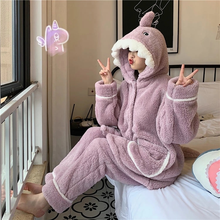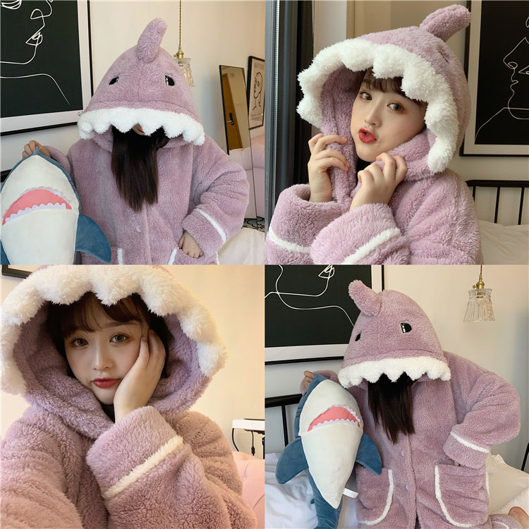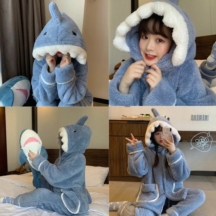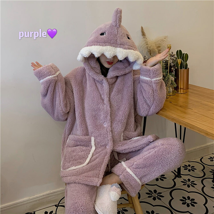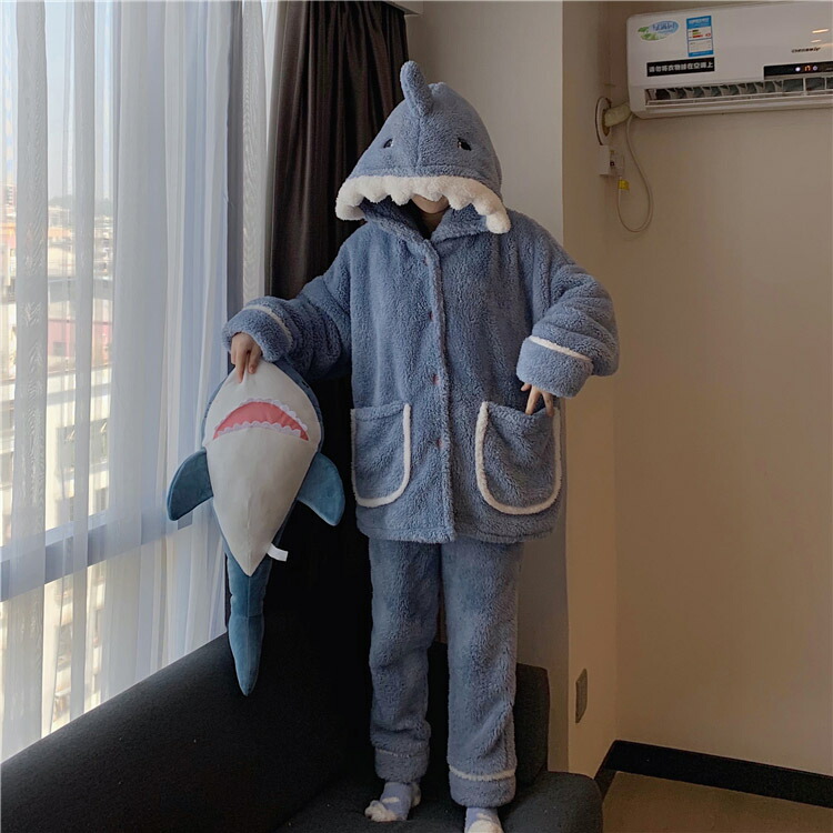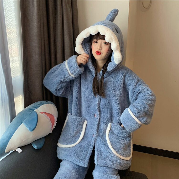 着ぐるみ パジャマ サメ もこもこ パジャマ 可愛い 大人用 モコモコ ルームウェア 修学旅行 着る毛布 動物 レディース 冬用 秋 2点セット 暖かい 前開き 韓国 着ぐるみ風 寝巻き おもしろ お
