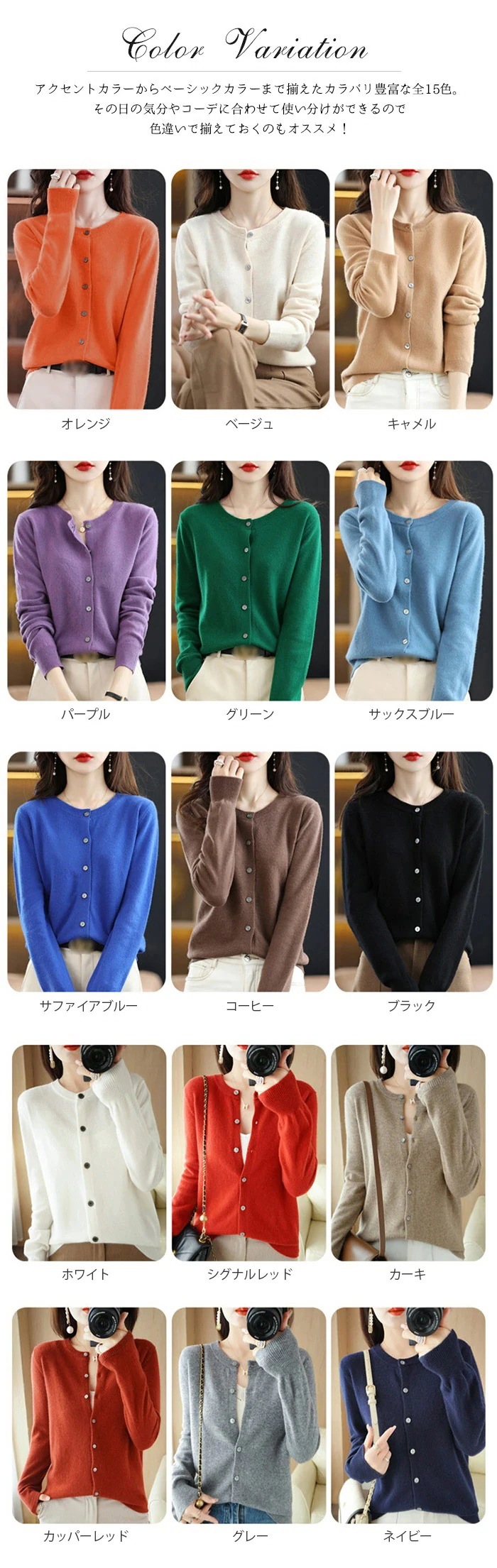 color: オレンジ ベージュ キャメル パープル グリーン サックスブルー サファイアブルー コーヒー ブラック ホワイト シグナルレッド カーキ カッパーレッド グレー ネイビー