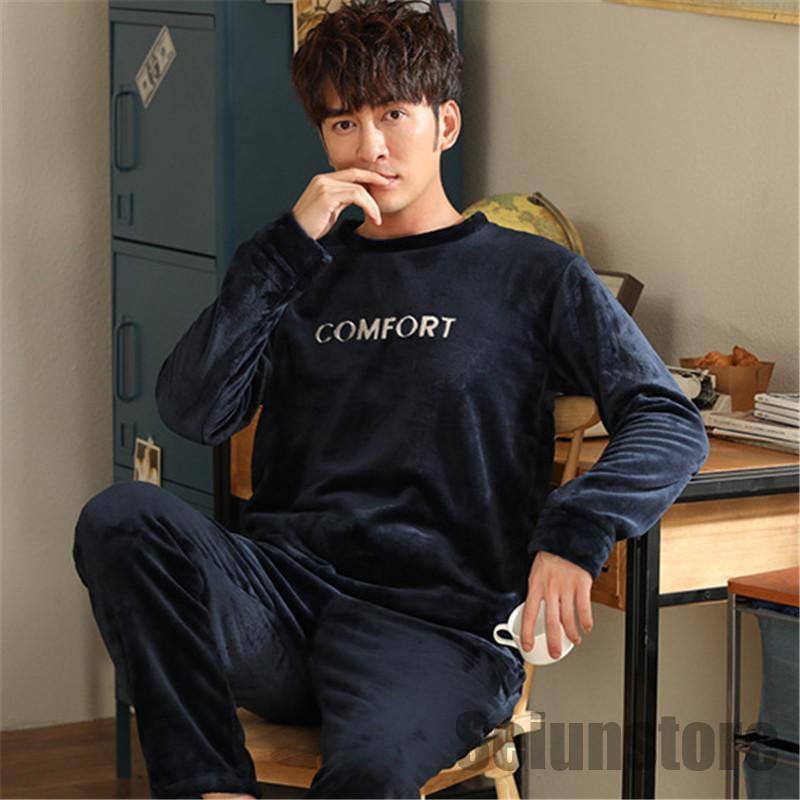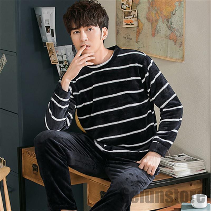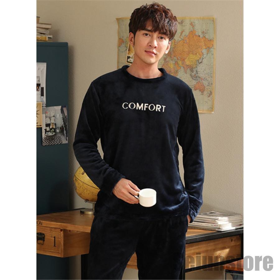 長袖 パジャマ メンズ セットアップ 上下セット 冬 暖かい 裏ボア 裏起毛 ルームウェア ナイトウェア トップス パンツ カジュアル 寝巻き 厚手 秋 あったか