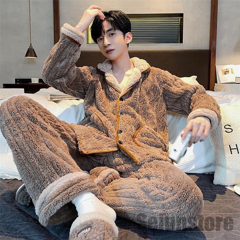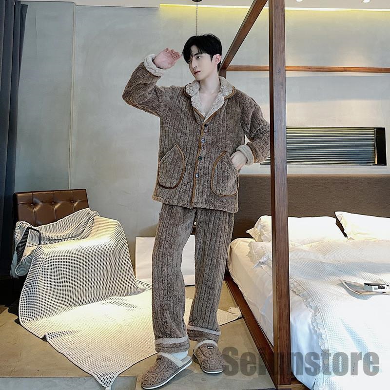 長袖 パジャマ メンズ セットアップ 上下セット 裏ボア 裏起毛 冬 暖かい ルームウェア ナイトウェア トップス パンツ カジュアル 寝巻き 秋 あったか