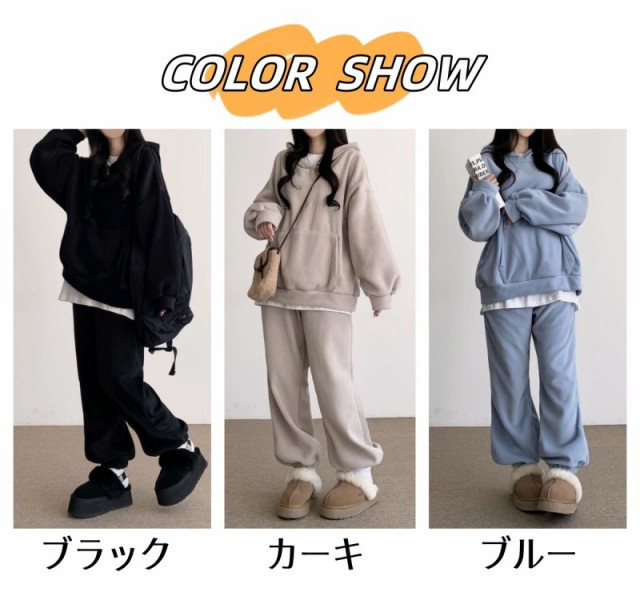 セットアップ レディース 大きいサイズ 裏起毛 2点セット 上下セット パーカー パンツ 長袖 フード付き ジャージ スウェット 秋冬 セットアップ