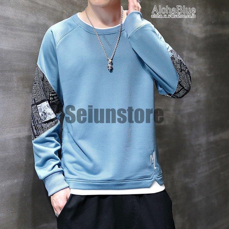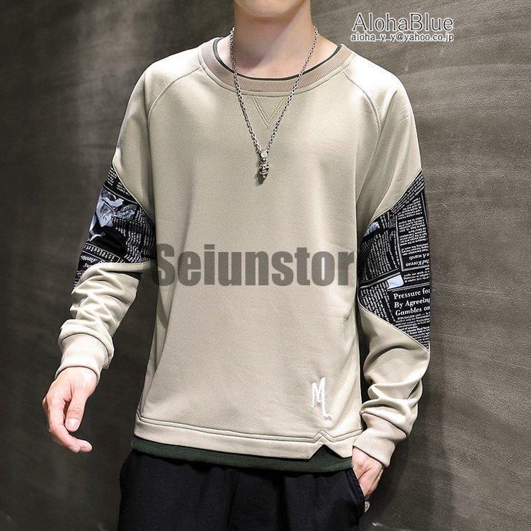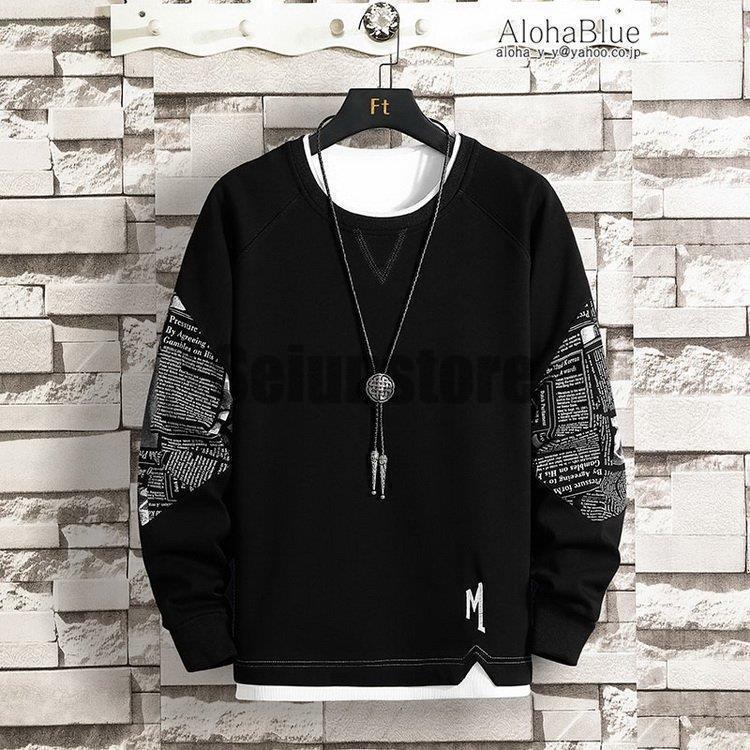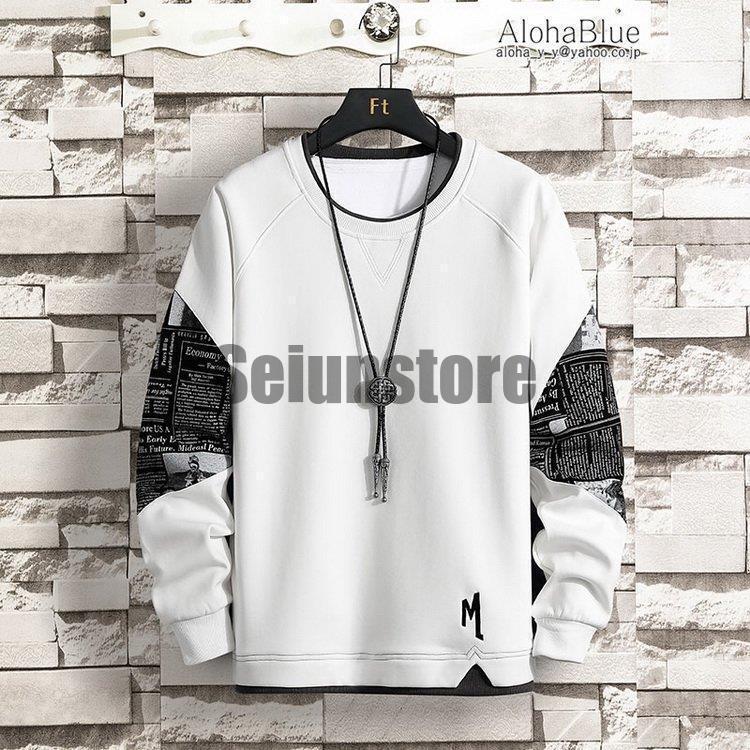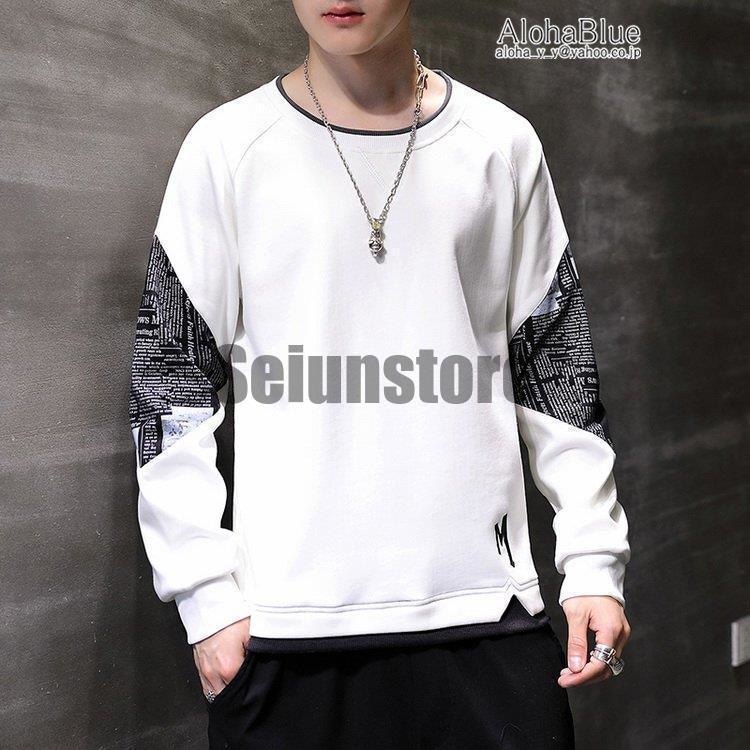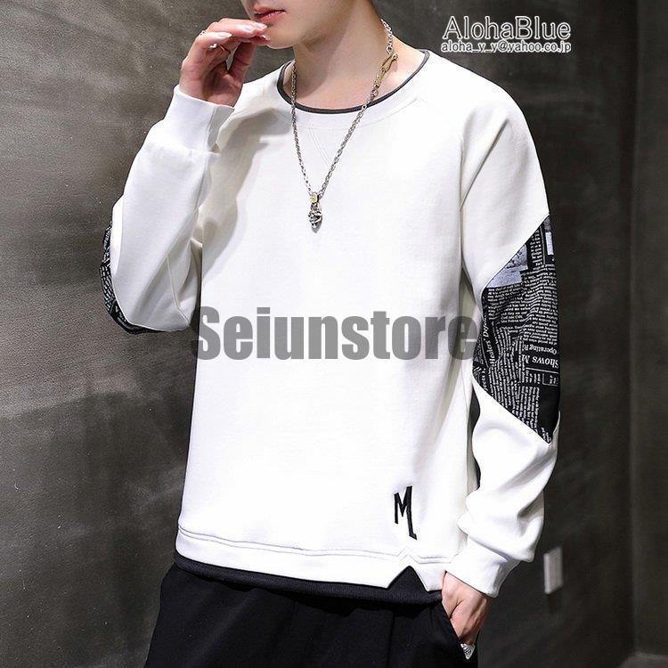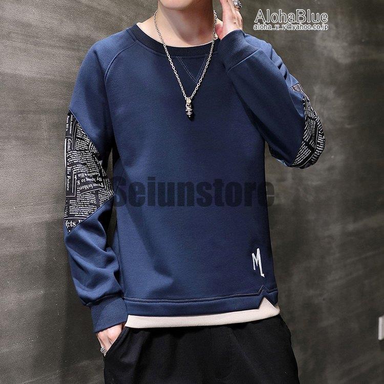 裏起毛トレーナー メンズ トップス 秋物トレーナー 裾切り替え クルーネック きれいめ 10代 20代 30代 秋冬 新作 Tシャツ