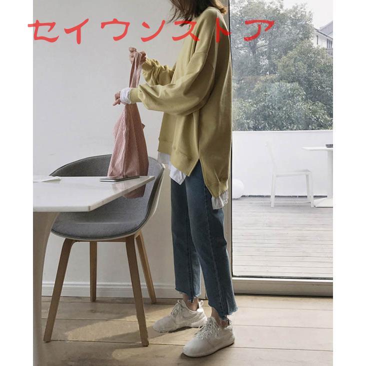 裏起毛 プルオーバー レイヤード風 保温防寒 ドロップショルダー カジュアル服 レディース トップス Tシャツ カットソー