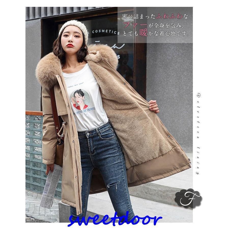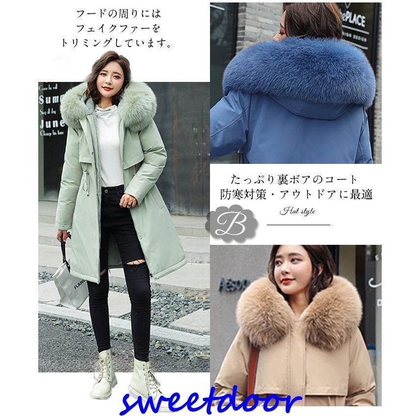 中綿コート レディース ファーコート ボアコート モッズコート アウター フェイクファー ロングコート もこもこ フード付き 冬 暖かい 防寒