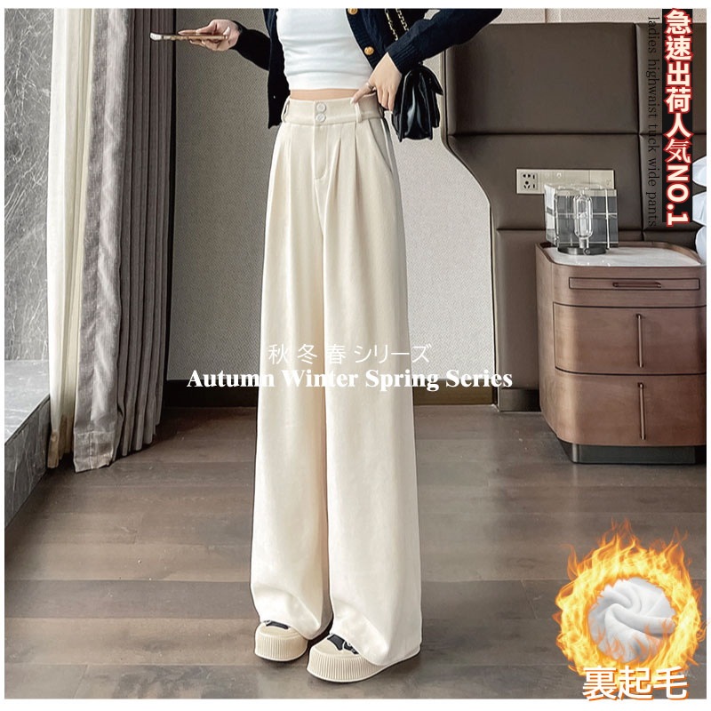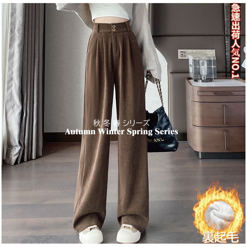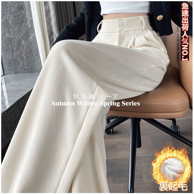 超人気商品 裏起毛レディース ワイドパンツワイドパンツ トレンド 韓国ファッション リブ ワイドレッグパンツ レディース 無地 シンプル さらさら リラックス カジュアル おしゃれ