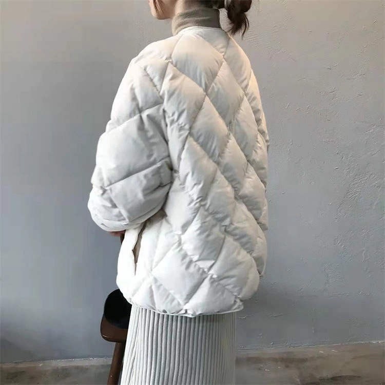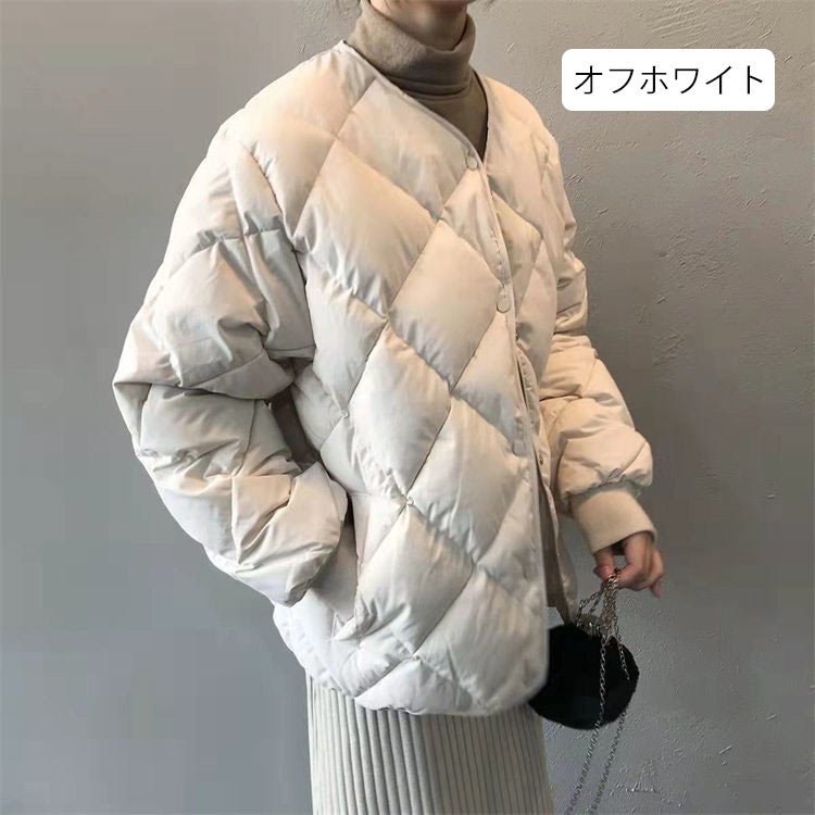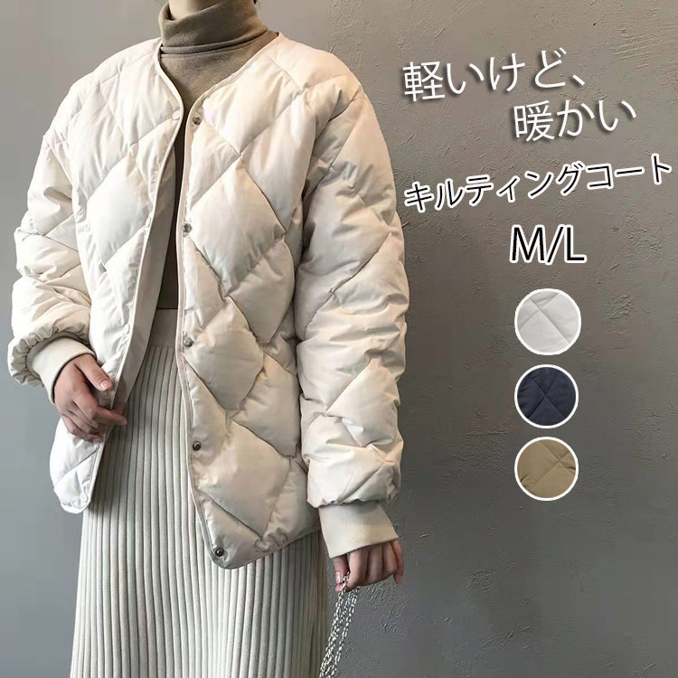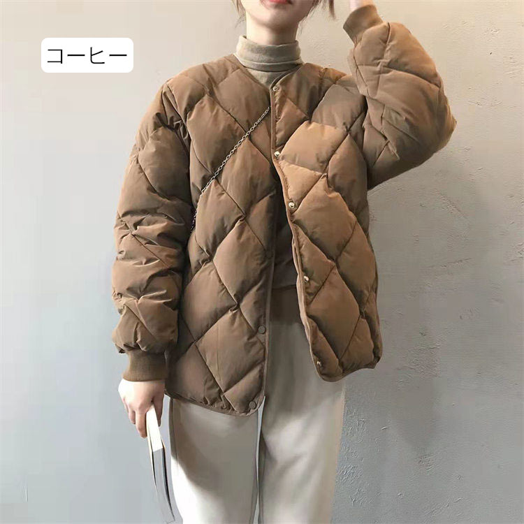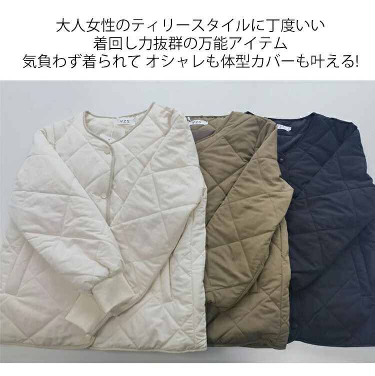 キルティングジャケット中綿ダウンレディース秋冬キルティングコート長袖ポケットノーカラージャケット中綿前開き中綿コートショート丈アウター羽織り冬物軽量中