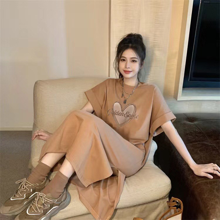 カジュアル Tシャツワンピース 夏の新作半袖接触冷感 ゆったり大サイズ凉感 ワンピースロング 体型カバー 快適 通気性のいい部屋着ルームウェアワンピース