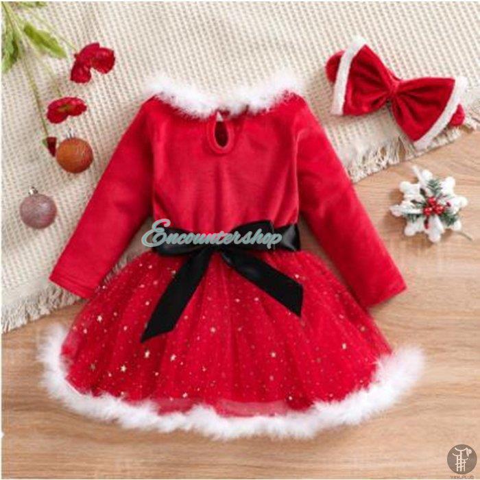 子供 サンタドレス ヘアバンド付き 2点セット サンタ衣装 クリスマス衣装 ファー 女の子 ワンピース サンタクロース キッズ クリスマス