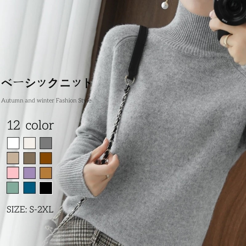 人気なリブニット ベーシックニット 初秋 冬 ハイネックニットトップス 無地百掛けタートルネック 長袖トップス ニットセーター レディース 秋冬 インナー ニットカシミヤタッチ