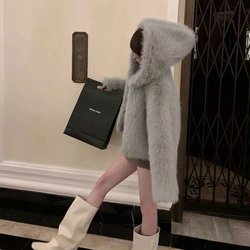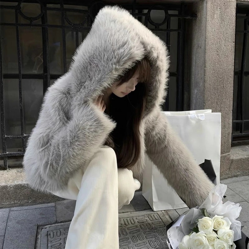 ふわふわシャギー ファーブルゾン ファーコート ショート ブルゾン フード付き レディース ファー コート フェイクファー ショート丈 アウター 暖かい もこもこ