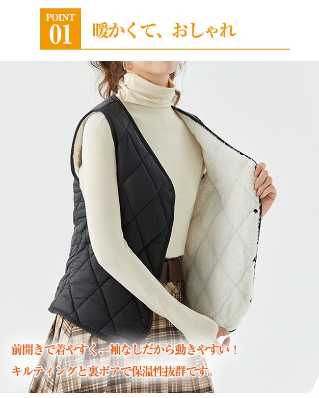 ベスト 裏ボア レディース おしゃれ あったか 暖かい もこもこ 厚地 秋冬 ルームウェア キルティング 撥水 洗える かわいい 裏起毛 大きいサイズ 重ね着