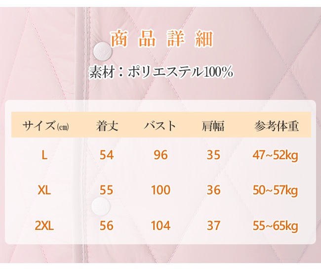 サイズcm:着丈/バスト/ 肩幅 / 参考体重