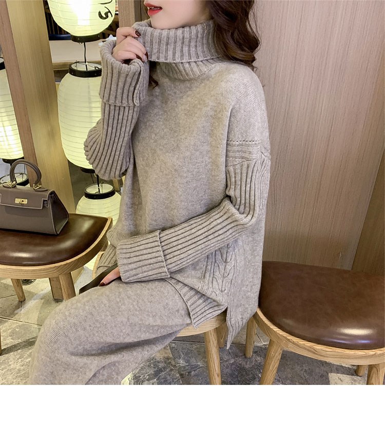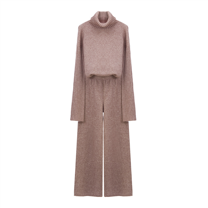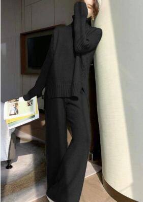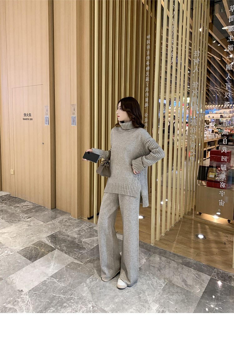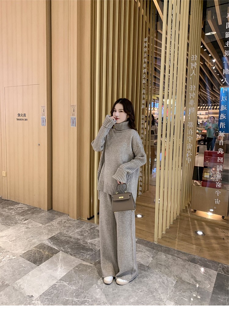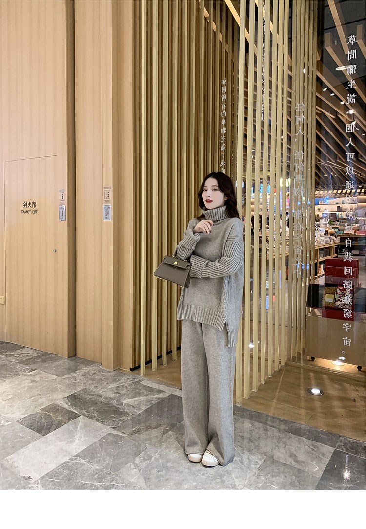 2024レディースニットセット秋冬新作 タートルネックセーター+ワイドパンツ ニット二点セット 怠惰な風 オシャレ 気質 上下レディースセット 通勤 長袖セーター ロングパンツ 二点セット