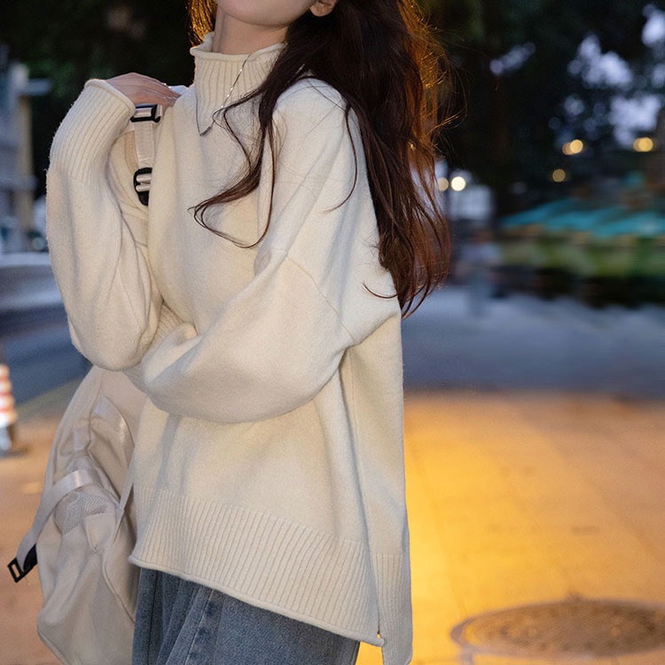韓国人気商品 厚手 ニット服 セーター 女性 冬アウター ルーズ セーター 大サイズ カシミヤタッチ 無地 厚手シャツ 秋冬 韓国ファッション レディース ファッション ベーシックニット