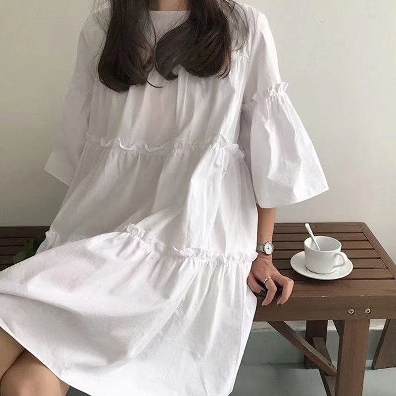 2024新作 日韓ファッション tシャツ レディース 可愛い ドールシャツ ゆったり大きいサイズ 体型カバー 半袖 トップス tシャツワンピース 百掛け 着痩せ 怠惰な風 tシャツ